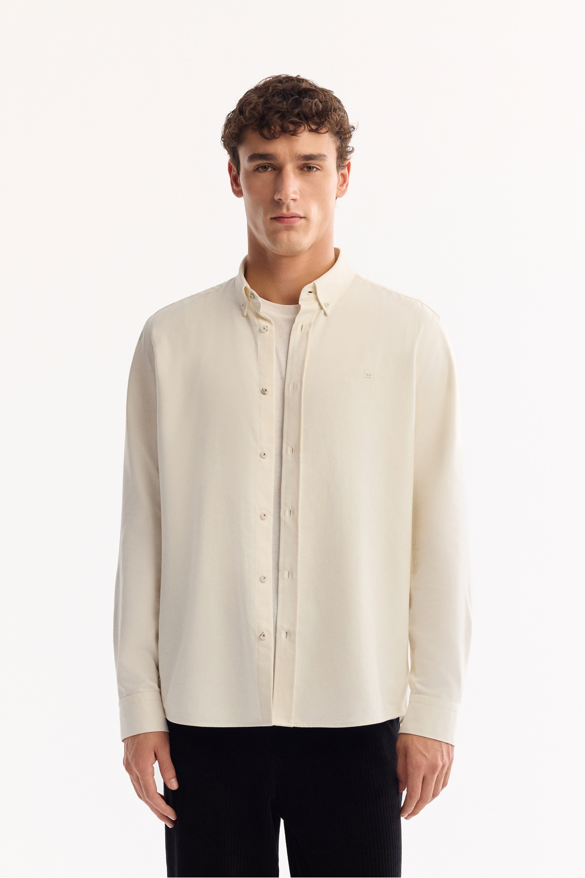 Avva Erkek Ekru Düğmeli Yaka %100 Pamuk Soft Touch Regular Fit Gömlek A52Y2042