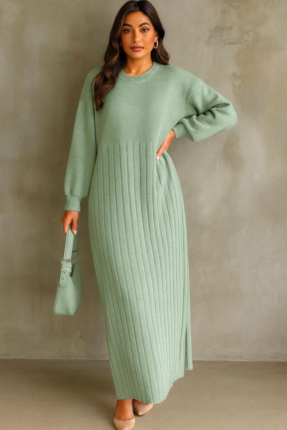 AXXAN kadın triko elbise etek kısmı piliseli uzun elbise