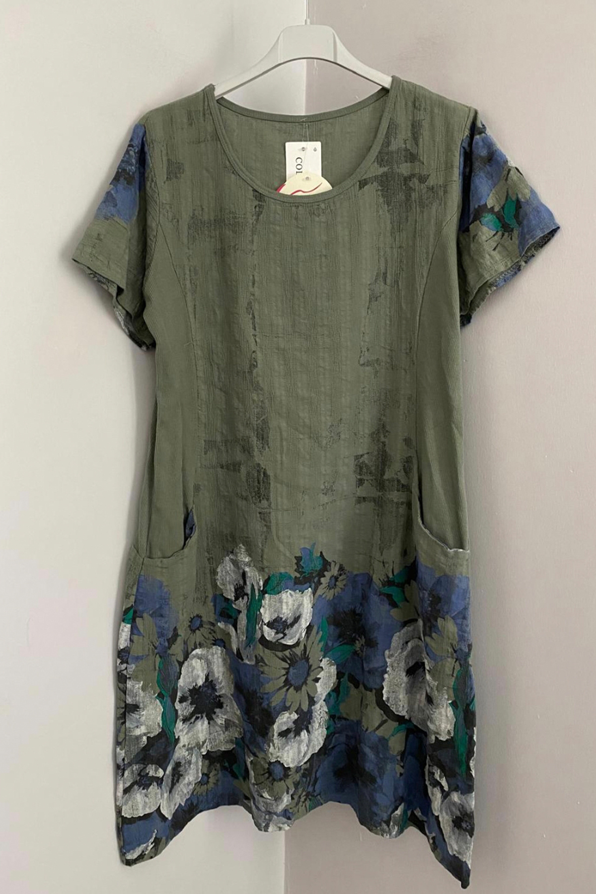 AYASOFYA OTANTIK Kadın İtalyan Haki Kır Çiçekleri Desen Kısa Kollu Torba Cepli Pamuklu Midi Elbise Özellikleri