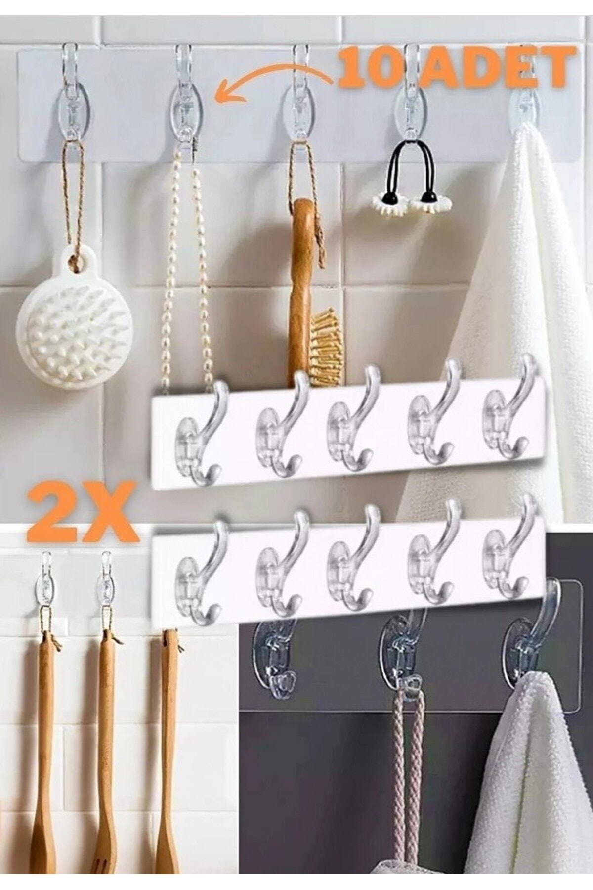 AYGÖREN HOME 2 Adet Kendinden Yapışkanlı Güçlü Şeffaf 5'li Askılık - Kapı Arkası Mutfak Duvar Banyo