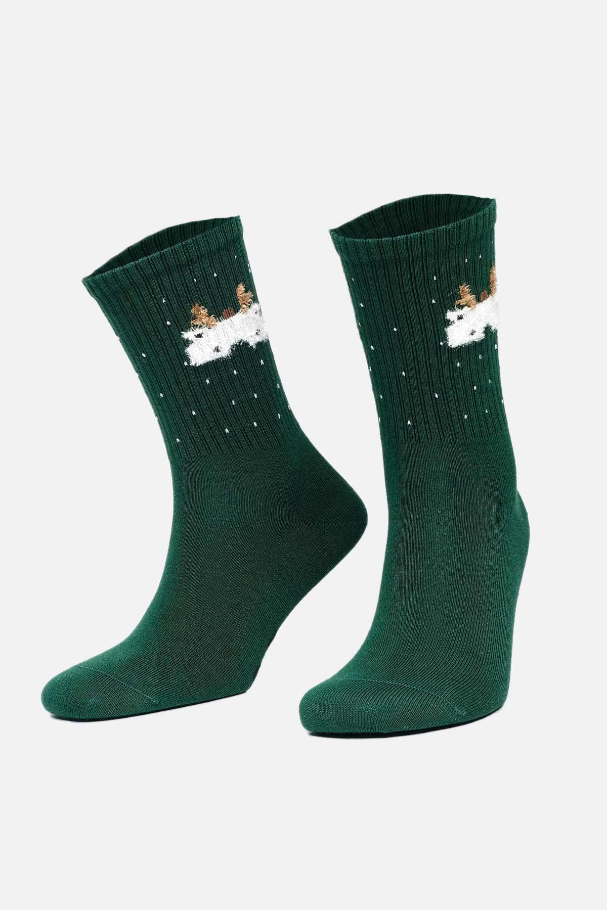 Aytuğ Kadın Pamuklu Tekli Yeşil Yılbaşı Temalı Çorap A 49001 Y