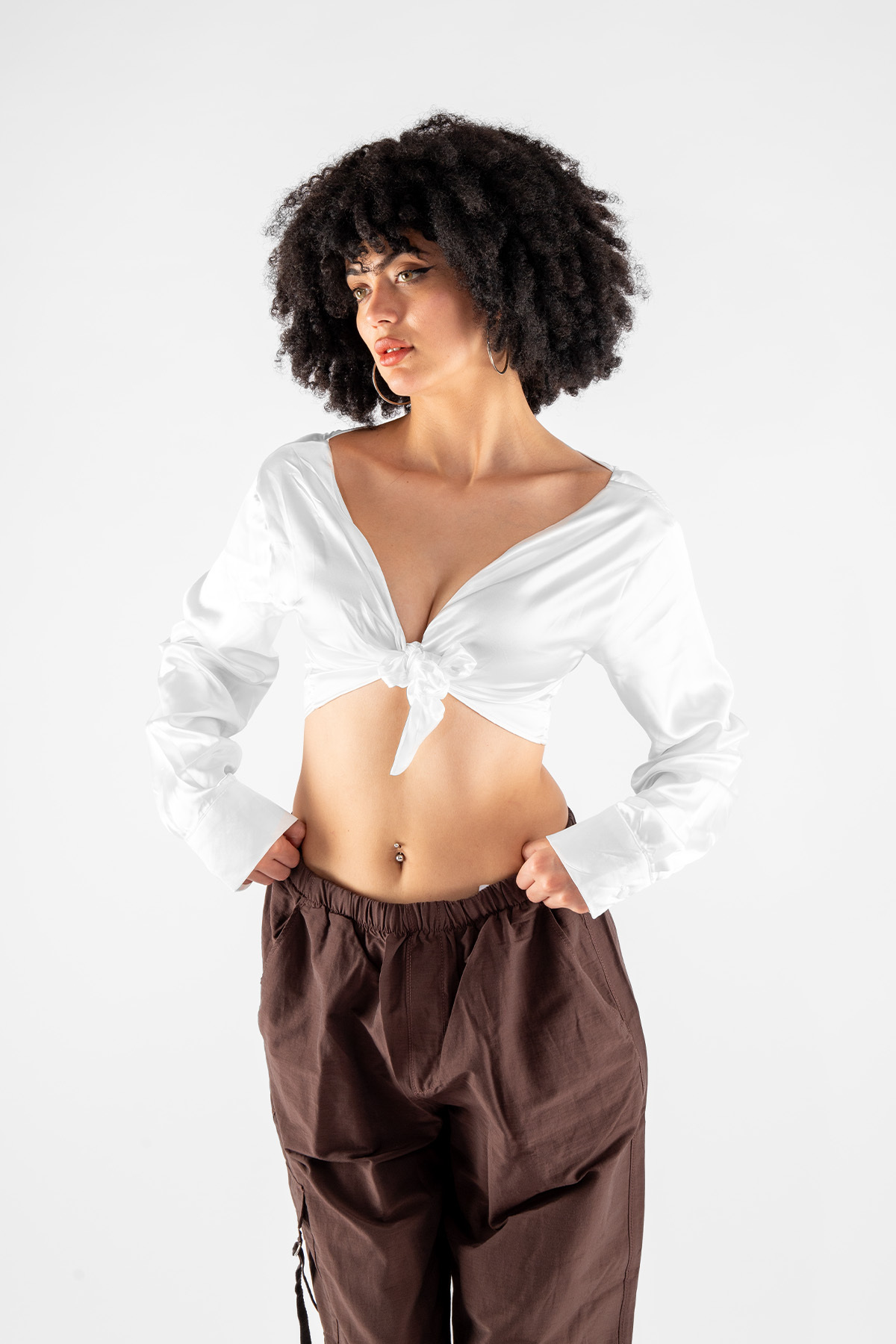 Bak Moda Bağlamalı Basic Beyaz Saten Bluz Özellikleri