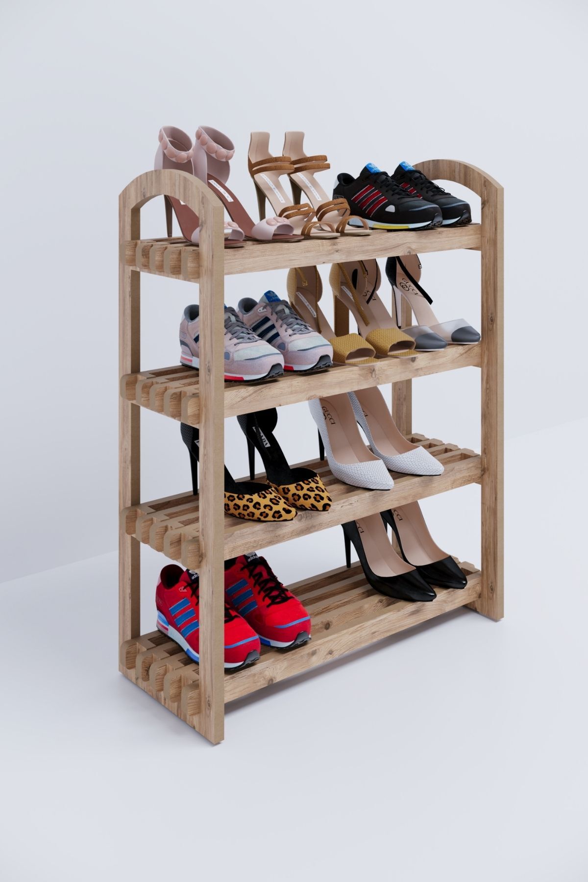 bangu Demonte Portatif 4 Raflı Ayakkabılık Çok Amaçlı Dolap Antre Kapı Önü %100 MDF