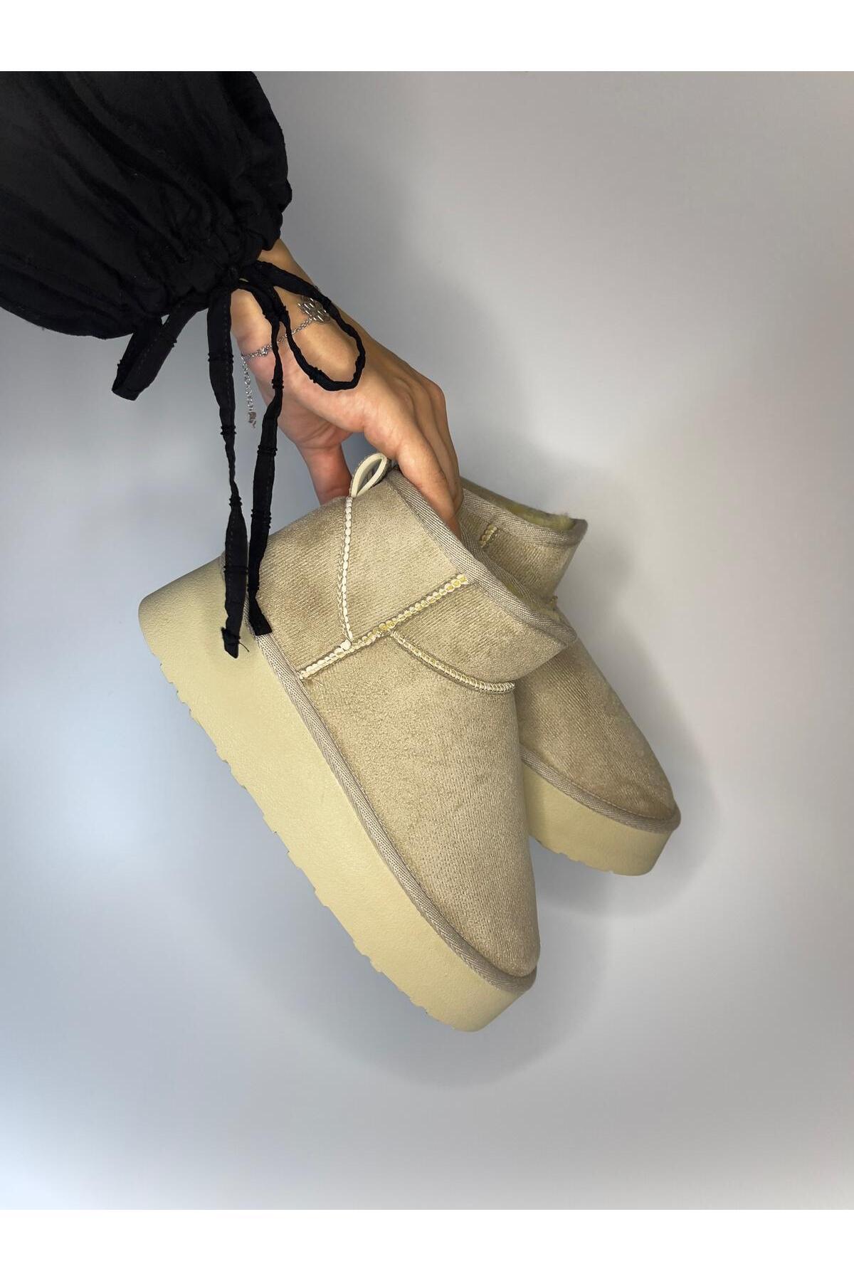Barka Kadın Süet İçi Kürklü Yüksek Kalın Taban Kışlık Bot & Bootie