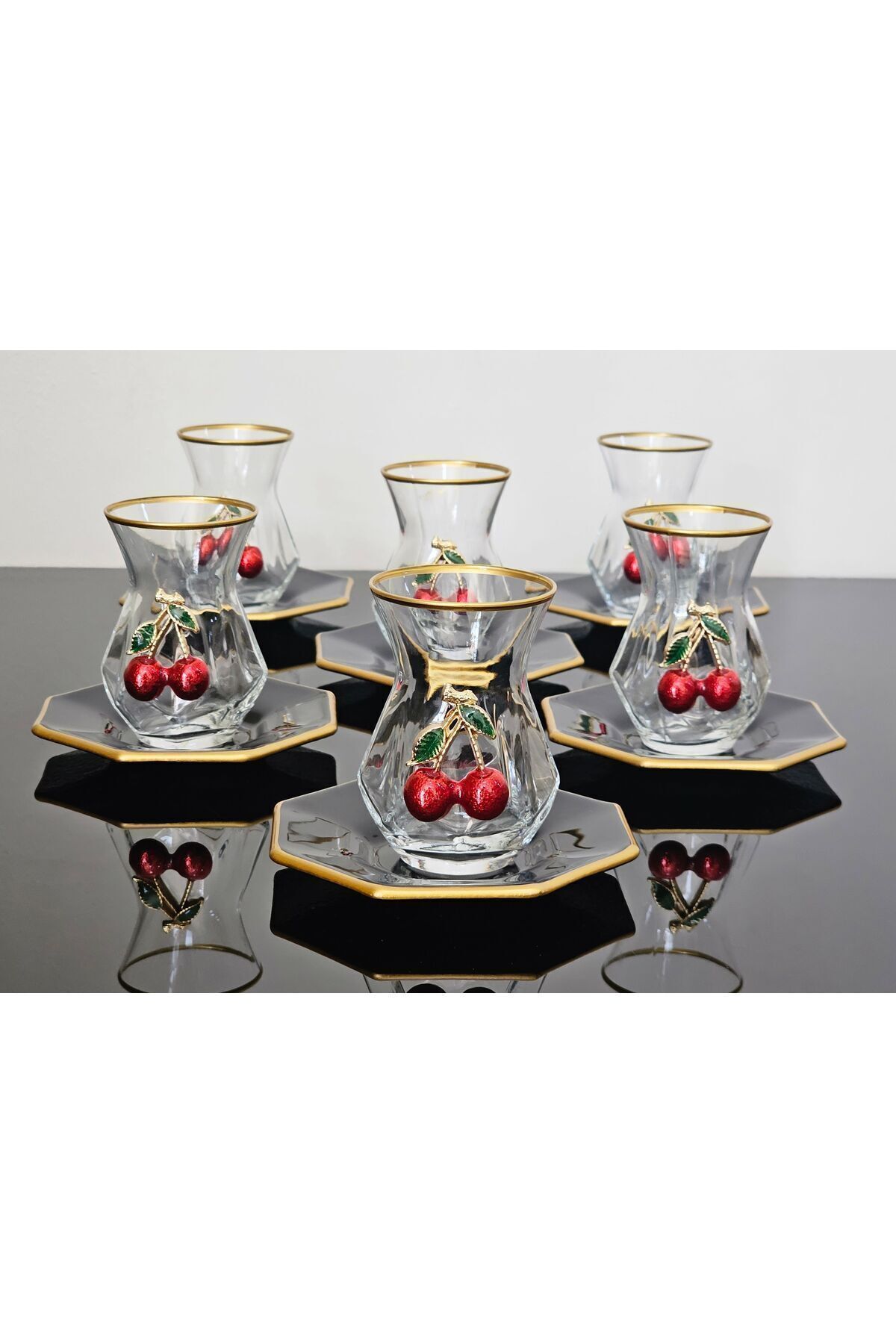 Barok ATLAS ÇAY SET SİYAH KIRAZLI
