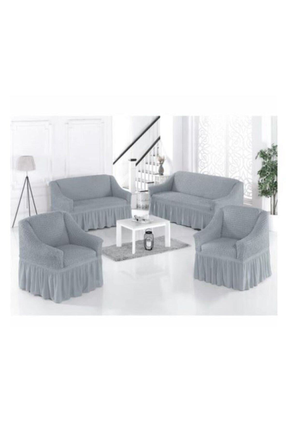 BASHTUGH TİCARET Bashtugh Bürümcük Pamuklu Koltuk Kanepe Lastikli Etekli Koltuk Kanepe Örtüsü Kılıfı 3+2+1+1 Takım.