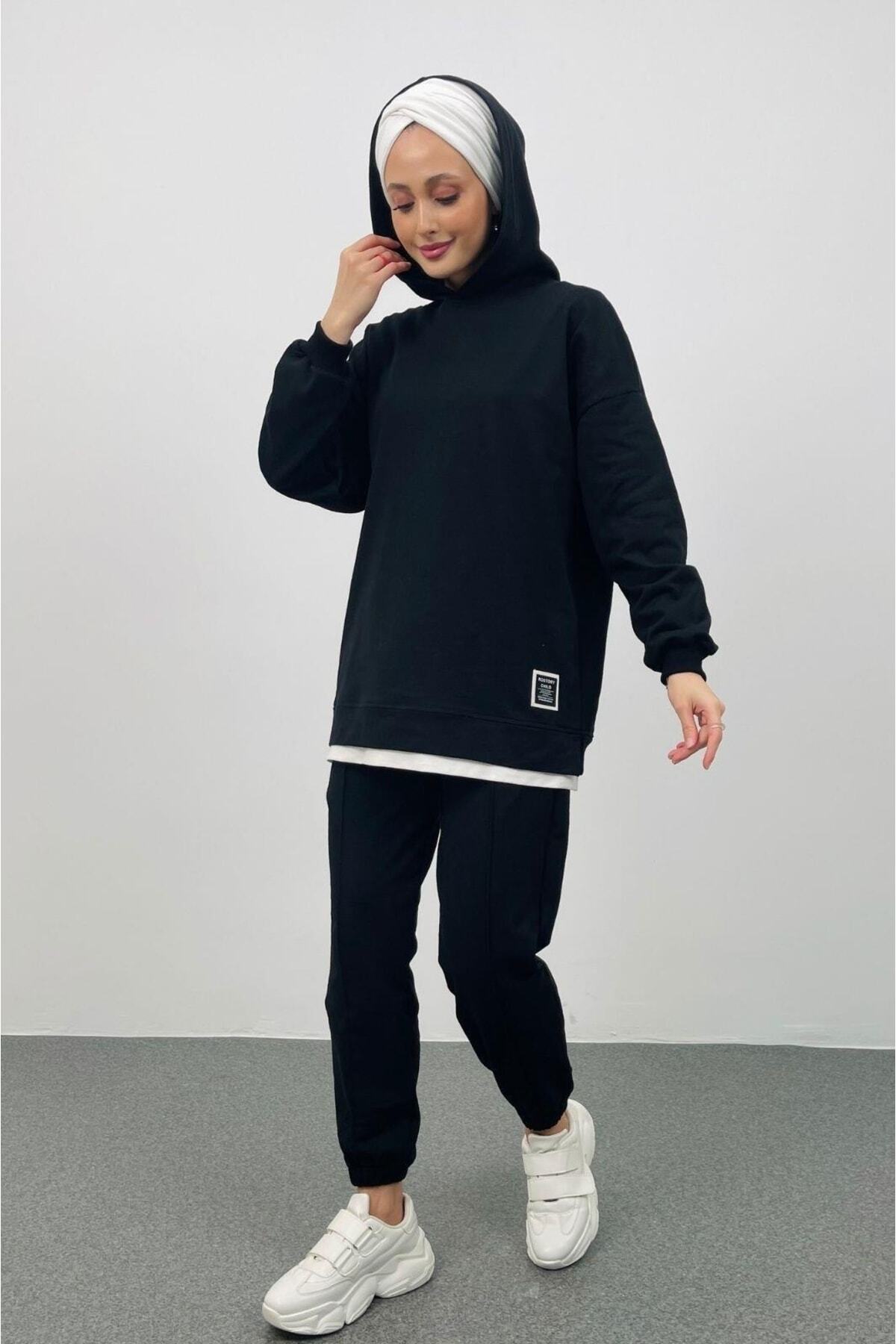 Basicpark Text Kapüşonlu Basic Oversize Siyah Alt Üst Eşofman Takımı Özellikleri