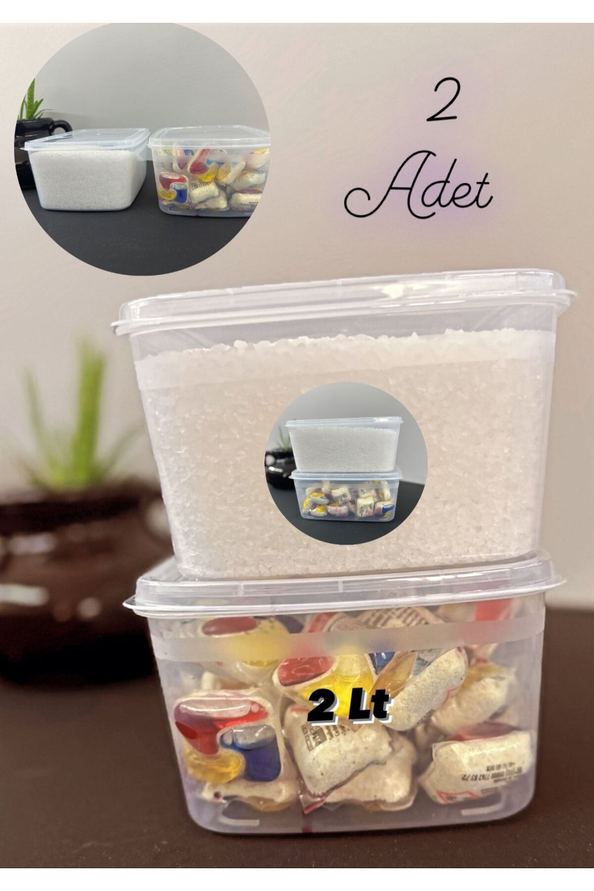 Bayev 2 Adet Huge Toz Ve Tablet Deterjan Saklama Kutusu Deterjan Saklama Kabı - 2 Litre