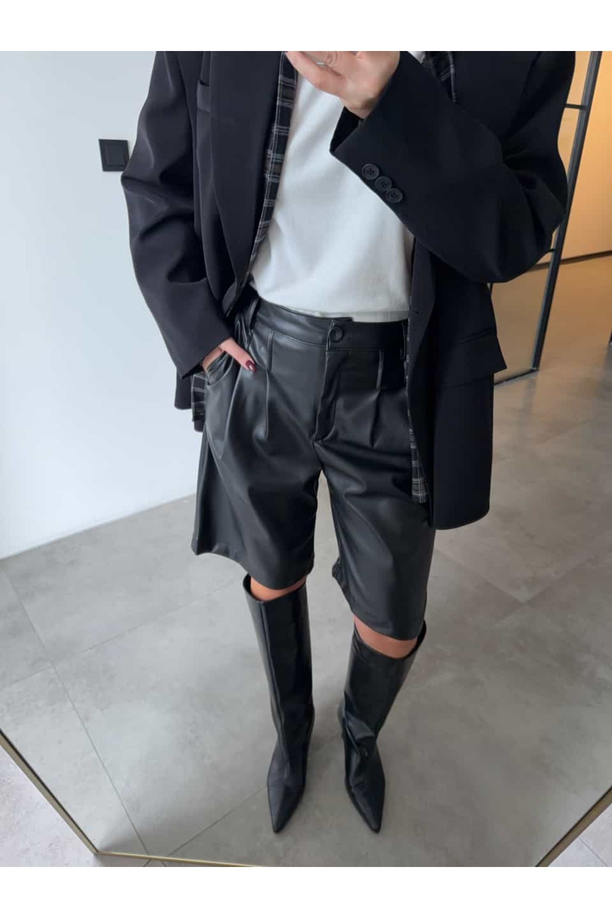 BB Bensu Buyruk SİYAH DERİ BERMUDA ŞORT