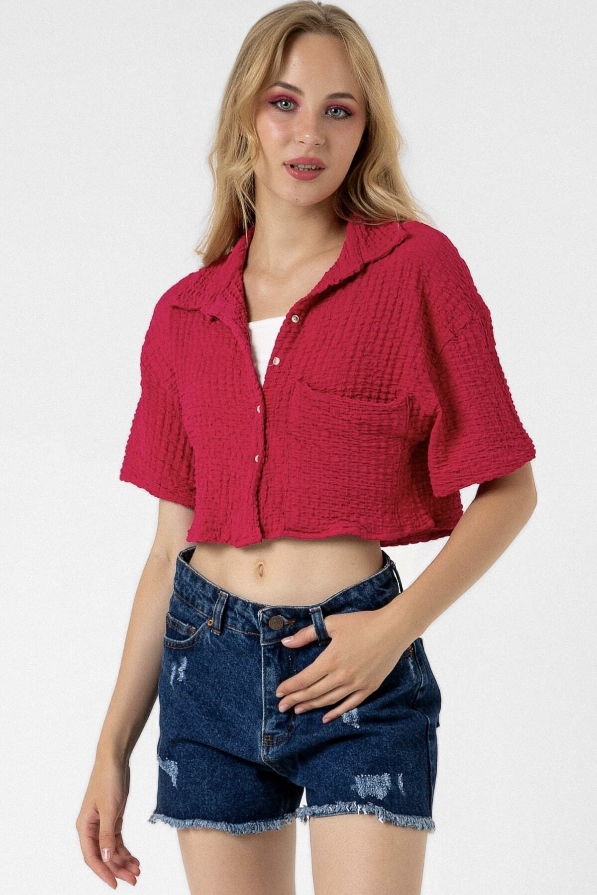 bb butik basic Bürümcük Cepli Crop Gömlek