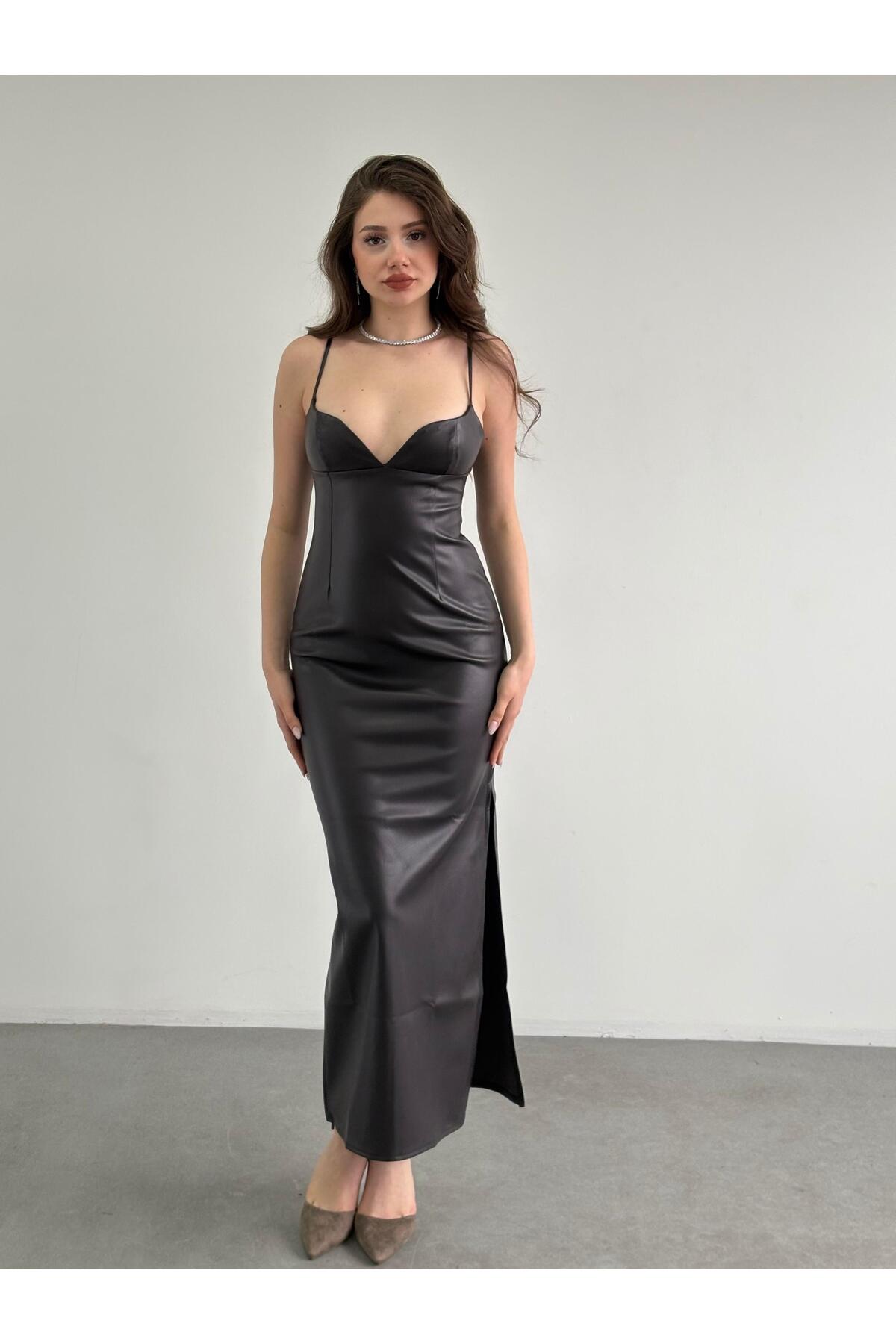 bbeox.com Deri Uzun Elbise
