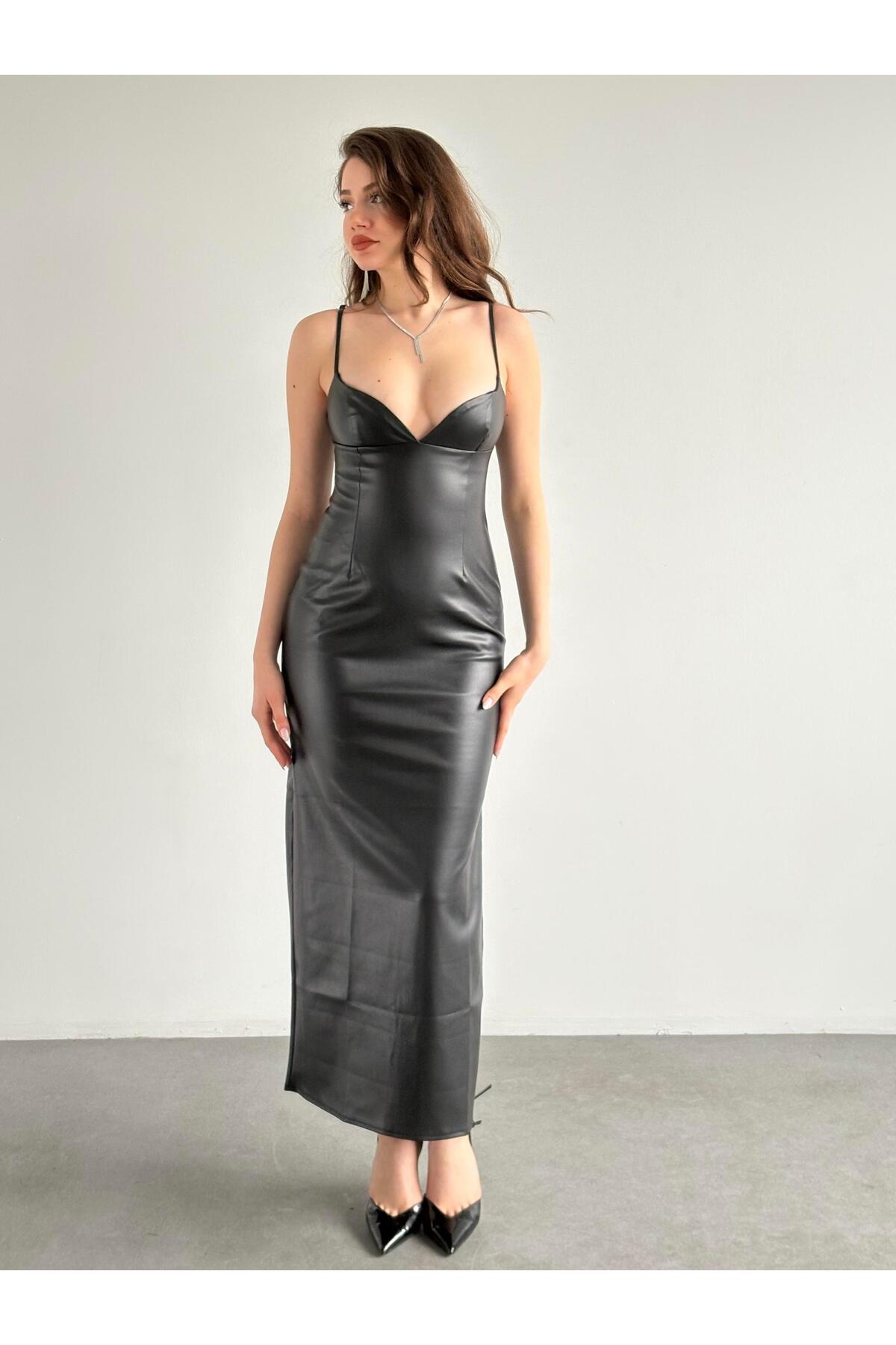bbeox.com Deri Uzun Elbise