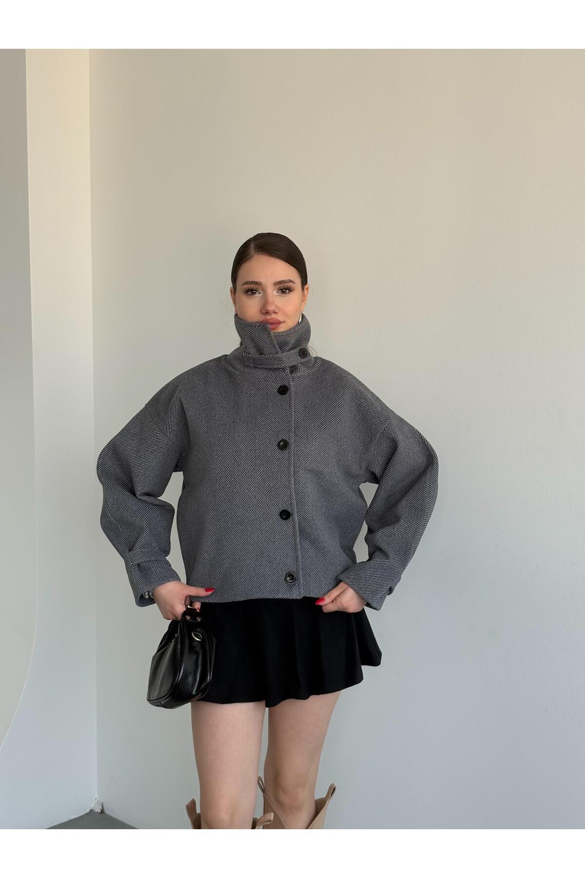 bbeox.com Kaşe Oversize Düğmeli Ceket
