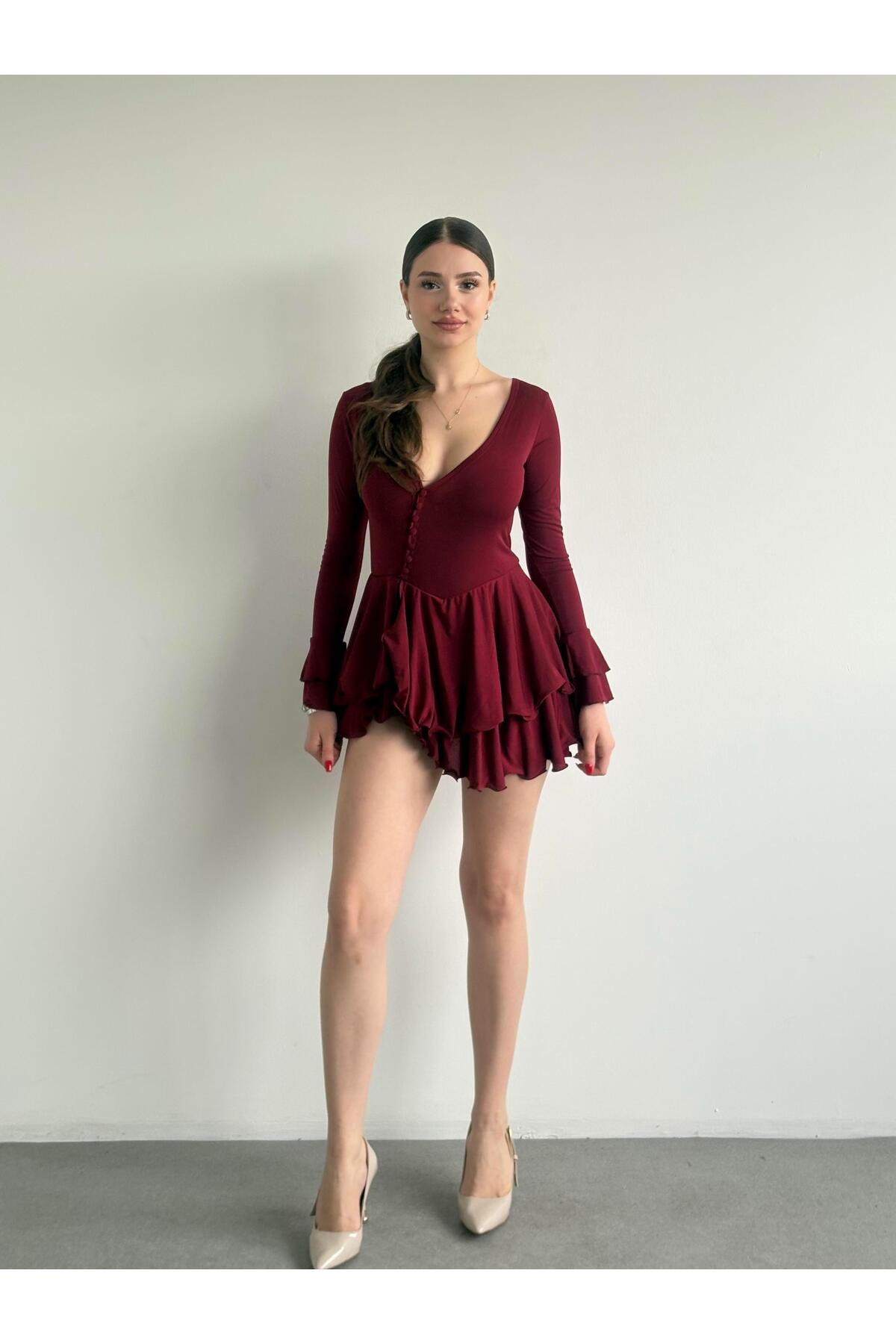 bbeox.com Şortlu Mini Volan Kol Elbise Özellikleri