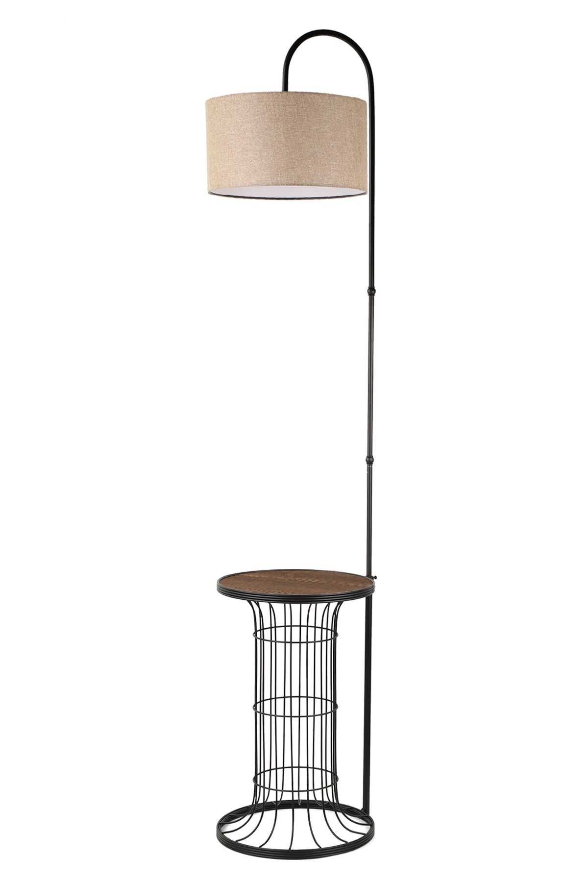 Begüsa Cemre Sehpa Lambader Siyah Ceviz Ahşap Hasır Şapka