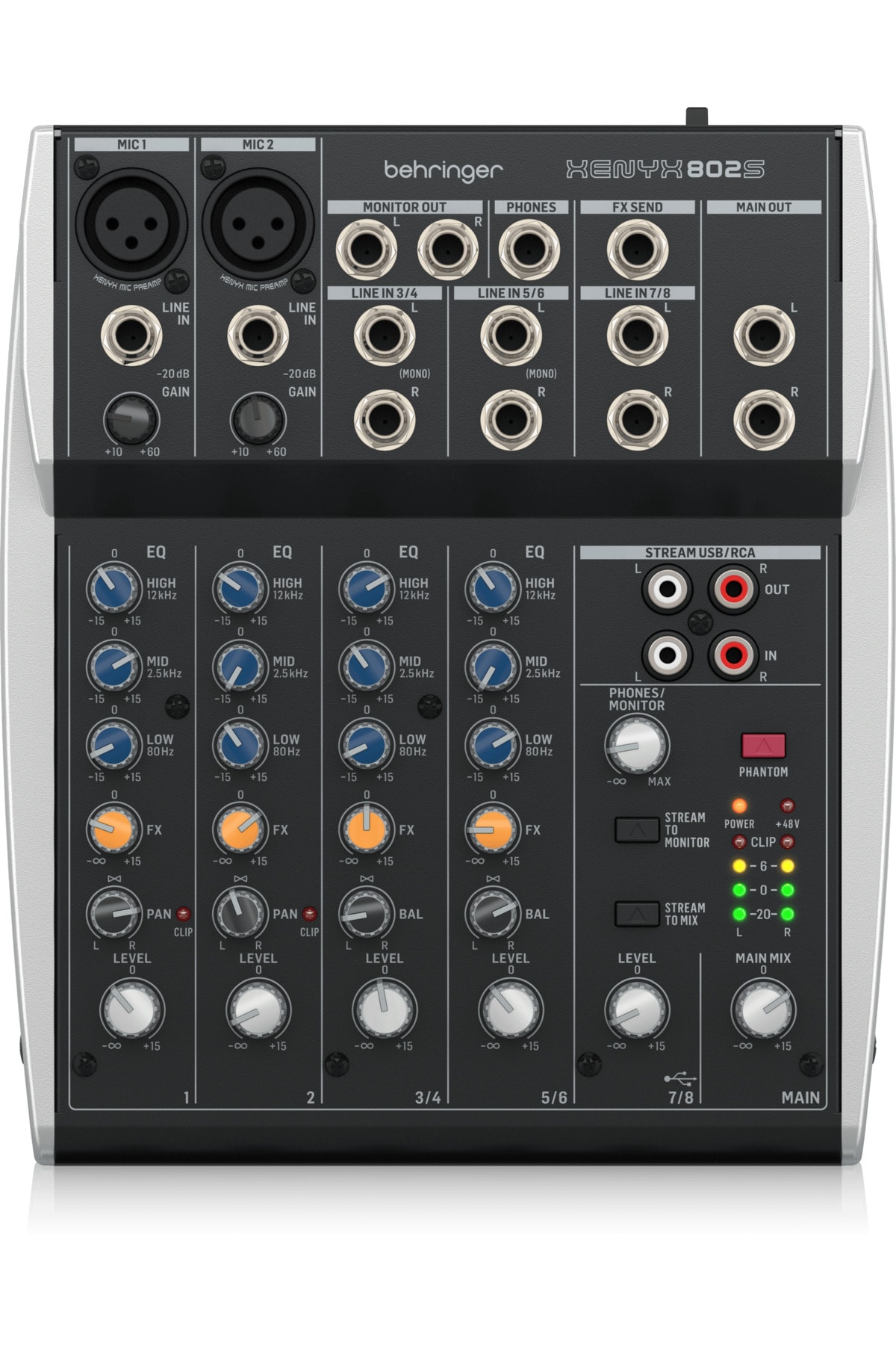 Behringer Xenyx 802S Premium Analog 8-Input Mixer with USB Stream