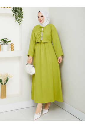 Kokosh moda Kadın Kolsuz V Yakalı Maksi Boy İthal Keten Elbise