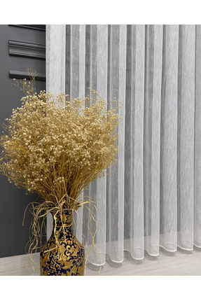 Demor Home Keten Görünümlü Ekstrafor Büzgülü Krem Rengi Yüksek Kalite Tül Perde
