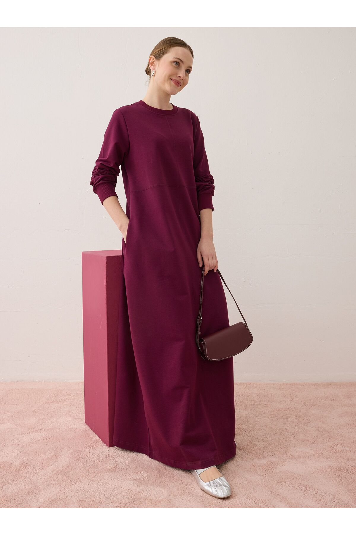 Benin Cep Detaylı Basic Tesettür Elbise - Vişne - Özellikleri