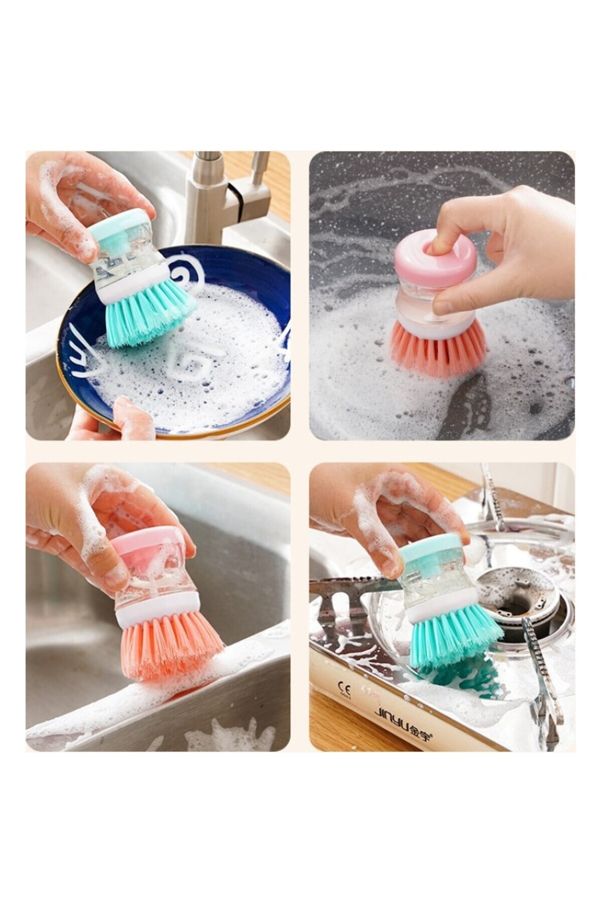 bestwork Sıvı Deterjan Hazneli Bulaşık Fırçası | Hazneli Mutfak Banyo Lavabo Yıkama Fırçası