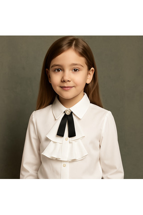 COOLMINIES Kız Çocuk Fisto Detaylı Gömlek, 5-8 Yaş, Kız Çocuk Beyaz Okul Gömleği