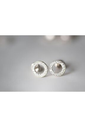 VELİT VOLA Zirkon Taşlı Halka Küpe Mineli Beyaz