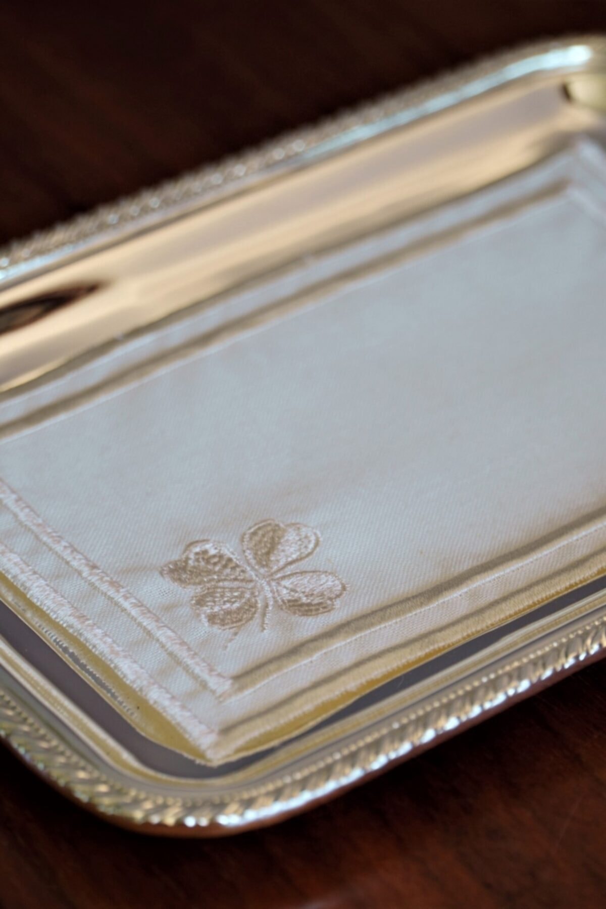 Beyaziş Yonca Nakışlı Isviçre Keteni Tepsi Örtüsü 11x17cm Ekru - 1 Adet