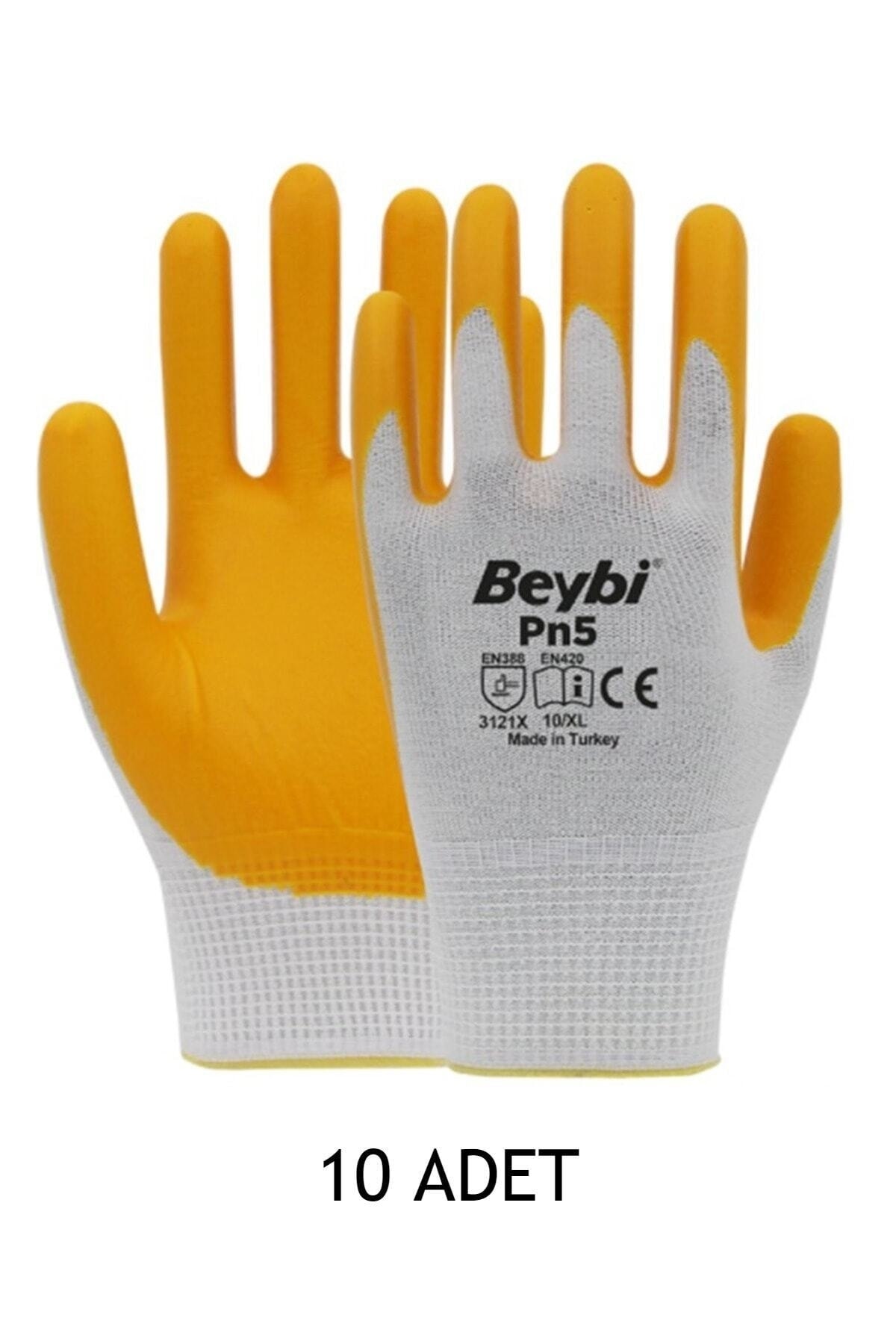 Beybi Pn5 Sarı Beyaz Polyester Örme Nitril Eldiven / 10 Adet Özellikleri