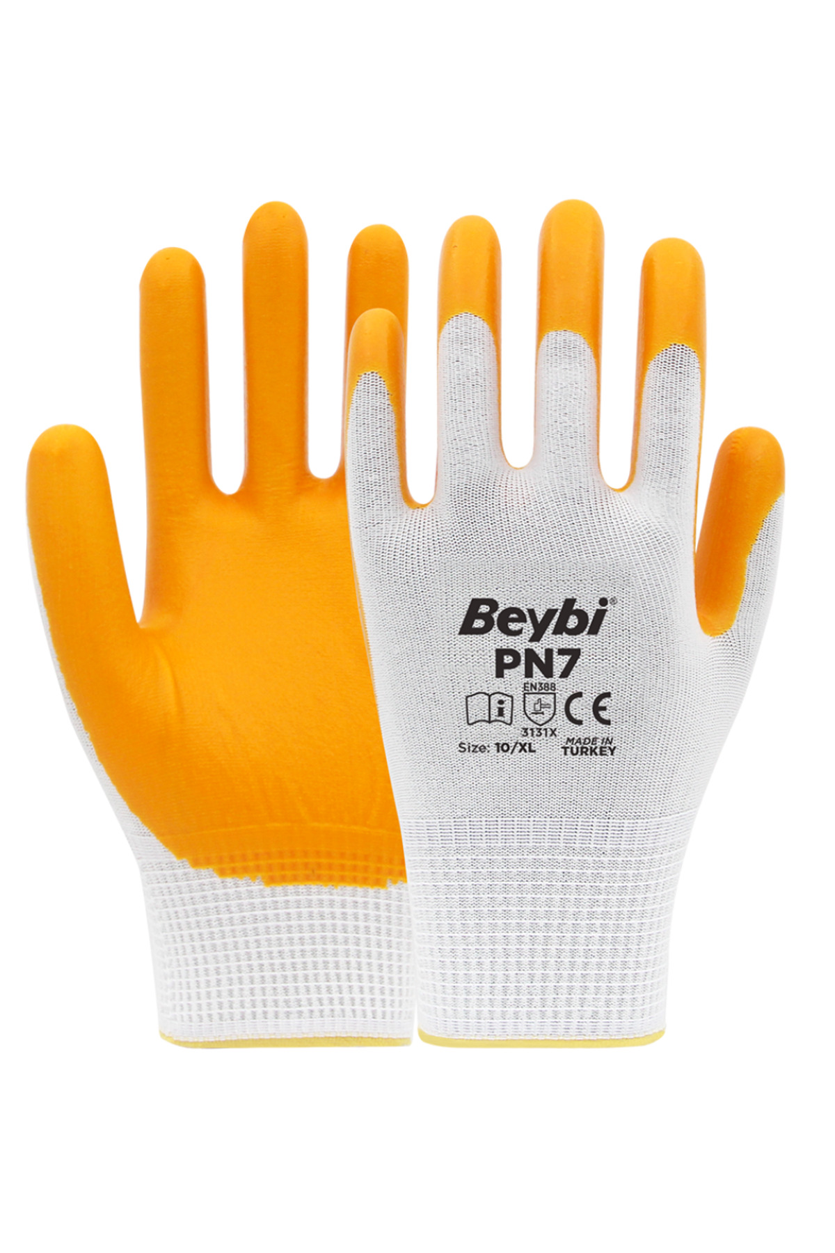 BEYBİ PN7 Polyester Örme NİTRİL ELDİVEN NO: 10/XL (12 ÇİFT)