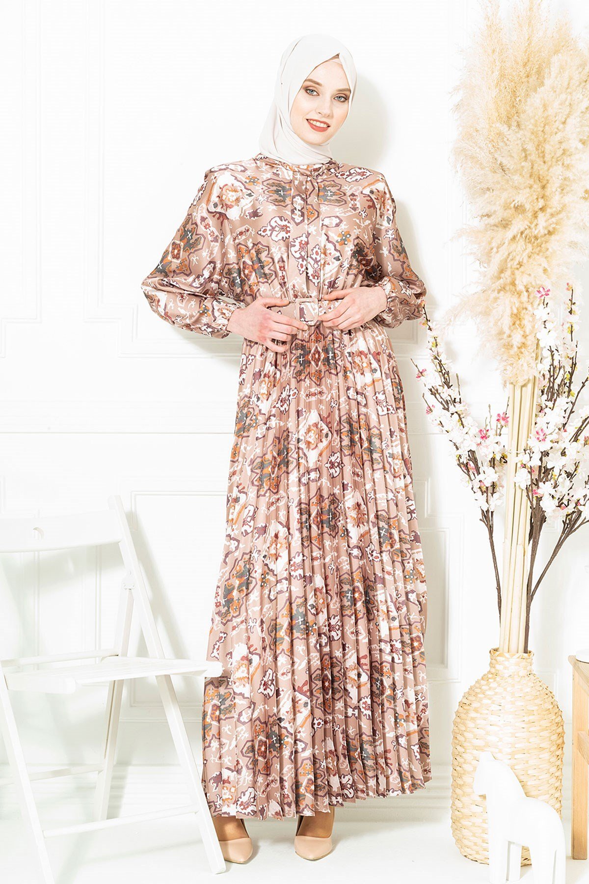 Beyza Büklüm Düğmeli Kemerli Kahve Tesettür Elbise 5364 Özellikleri