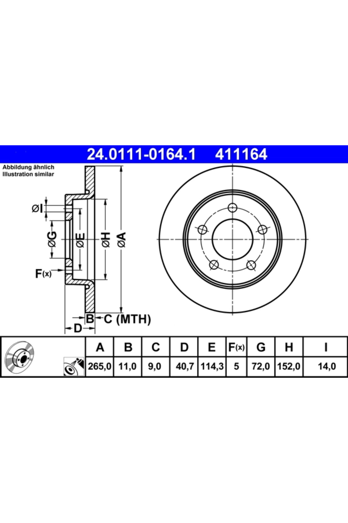 Ate Спирачен диск за Mazda 3