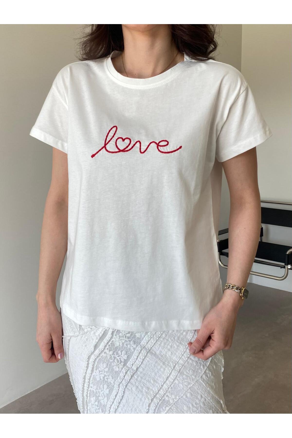 Bade Butik Бяла бродирана тениска Basic