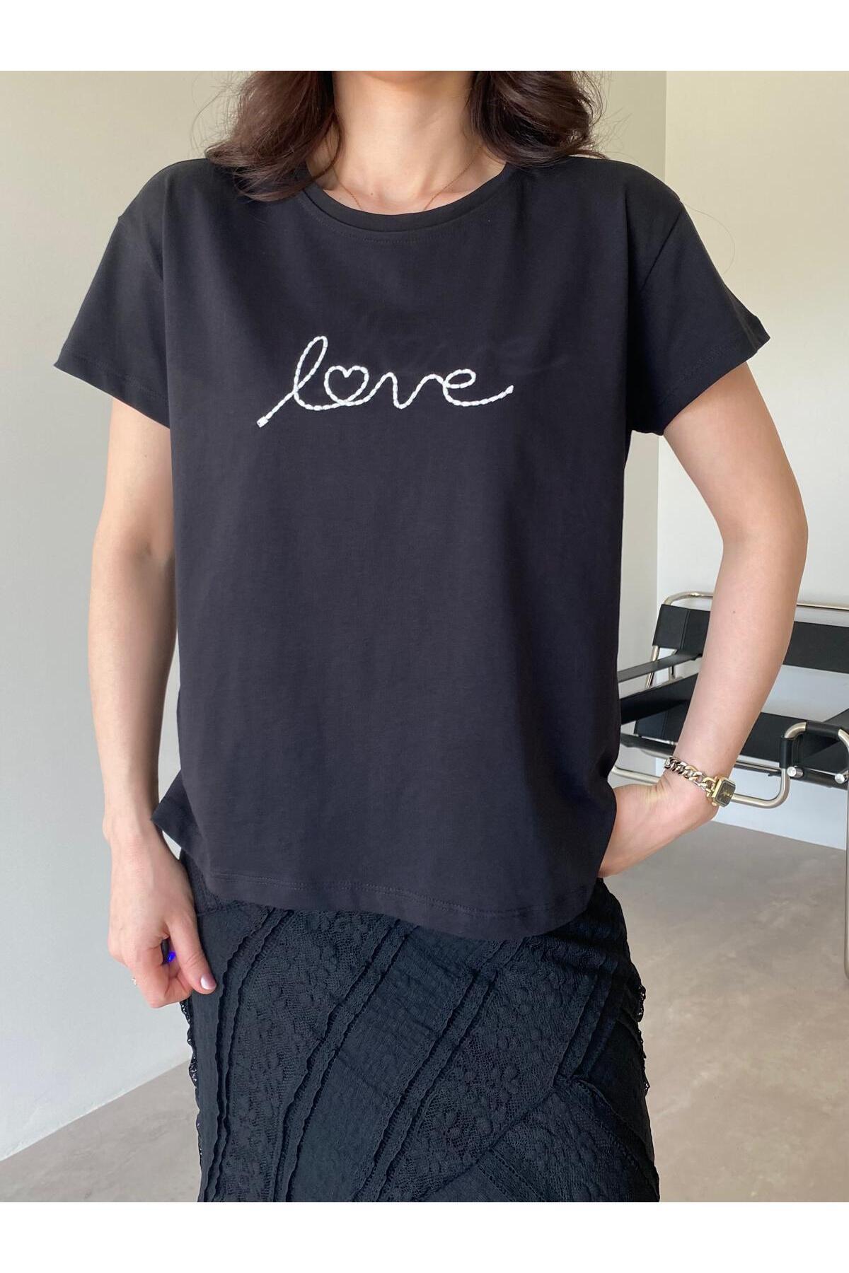 На фокус Bade Butik Черна бродирана тениска Basic