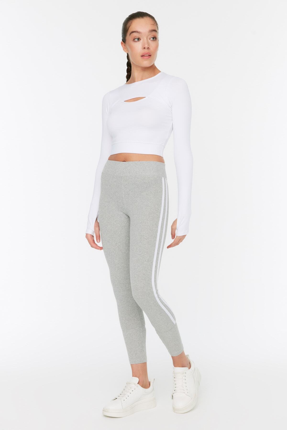 На фокус Trendyol Collection Трикотажни спортни чорапогащи с пълна дължина със сива линия TWOSS21TY0011