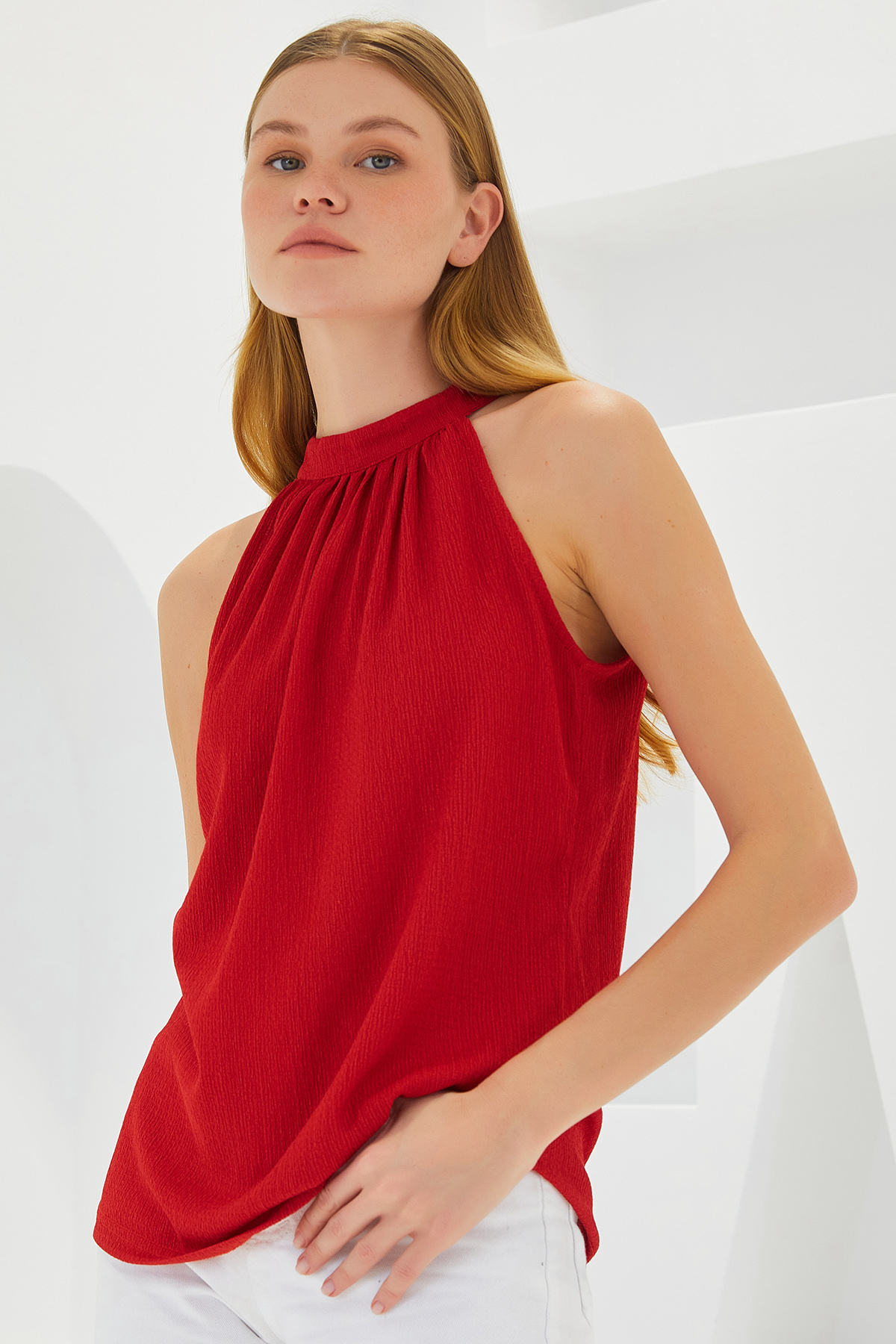 Bigdart 0489 Halter Yaka Örme Bluz - Kırmızı Özellikleri