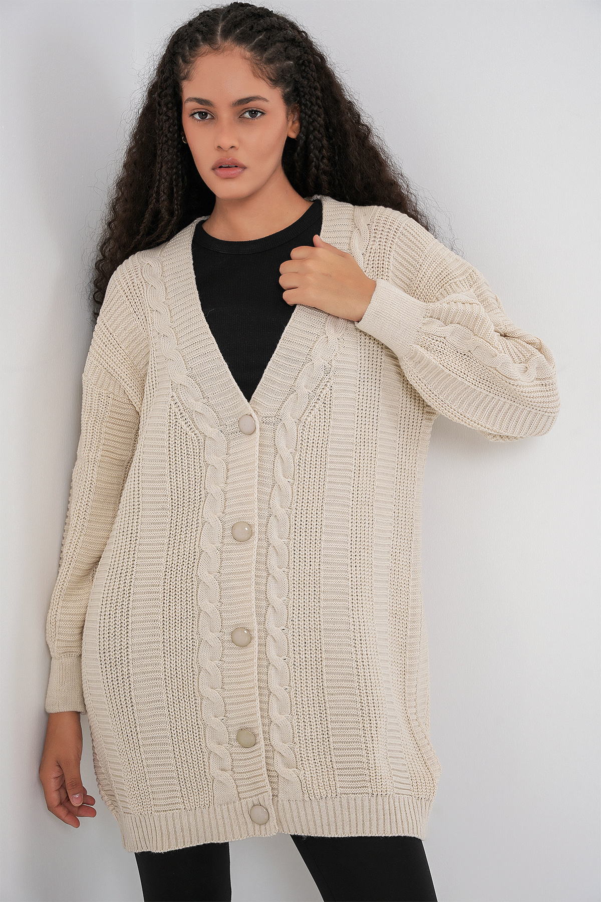 Bigdart 15768 Tesettür Triko Hırka - M. Krem
