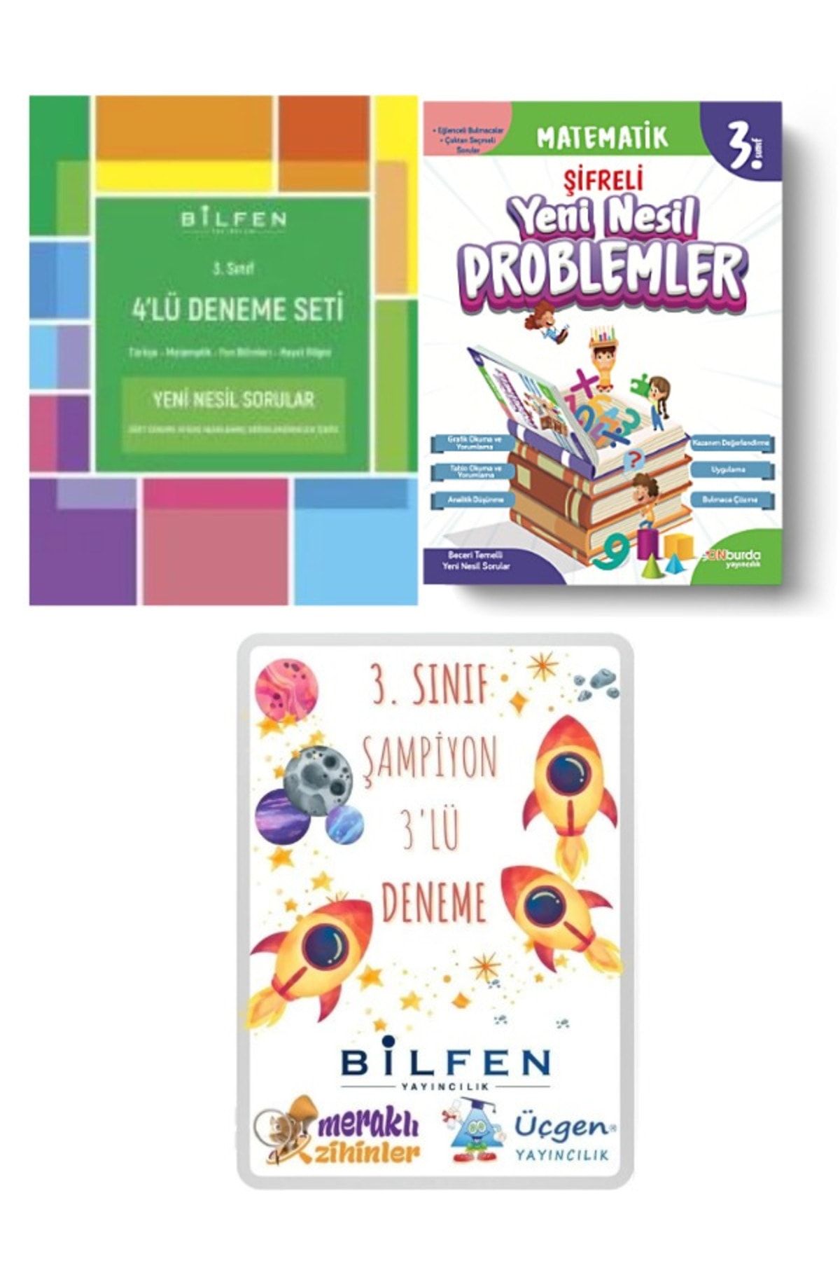 Bilfen Yayıncılık 3. Sınıf 4'lü Deneme-ONburda 3. Sınıf Yeni Nesil Problemler-3'lü Deneme(Bilfen-Meraklı-Üçgen) Özellikleri