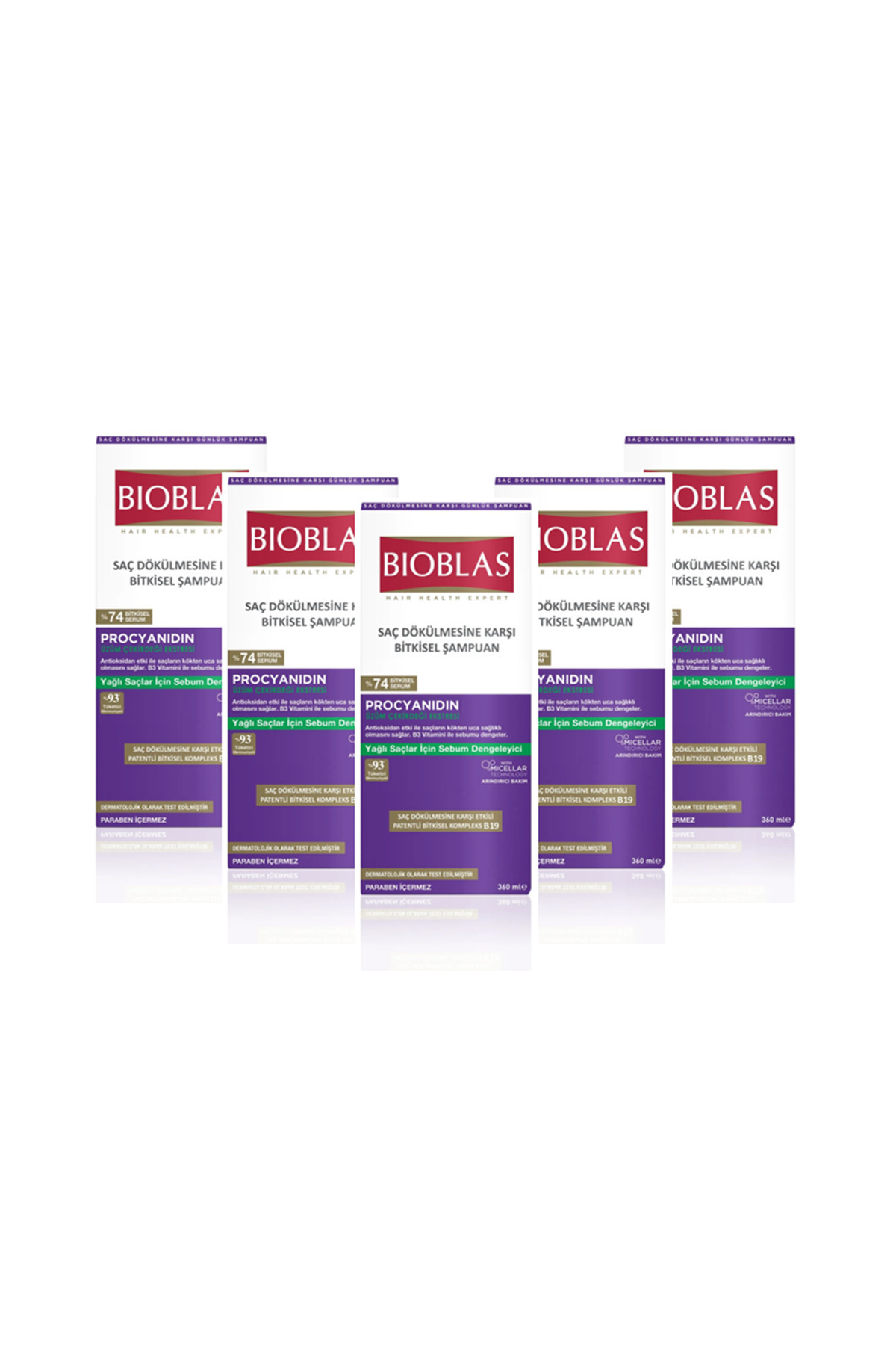 Bioblas Procyanıdın Yağlı Saçlar İçin Dökülmeye Karşı Bitkisel Şampuan 360 ml 5 Adet