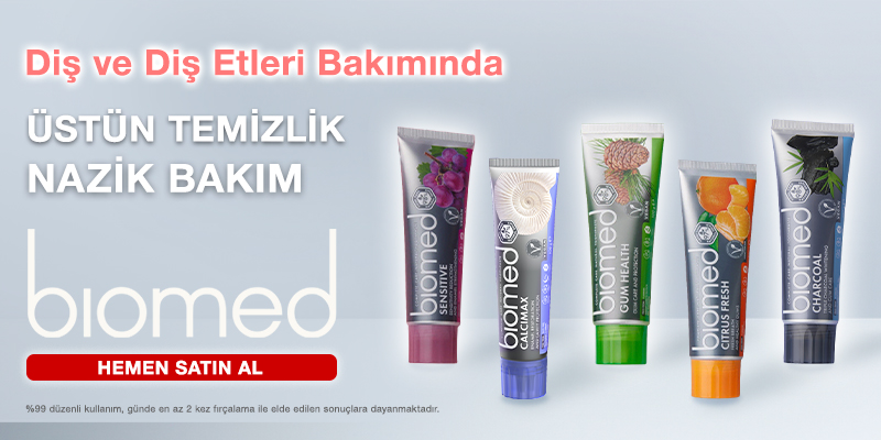 Doğal içerikleri sayesinde ağız sağlığınızı koruyan Biomed diş macunu çeşitleri modern teknoloji ile üretilir. Etkili formülleri sayesinde ideal bir tercihtir. Günlük diş bakımı rutininize ekleyerek ağız sağlığınızı koruyabilir, parlak ışıltılı beyazlığa sahip olabilirsiniz. Biomed Charcoal diş macunu doğal içerikleri ile ön plana çıkar. Ürün üç çeşit kömürün yanı sıra 15 aktif doğal bileşen içerir. Güçlü bir temizlik ile beraber doğal beyazlatma, parlaklık üzerine odaklanır. Aşındırıcı ya da beyazlatıcı herhangi bir kimyasal içermeyen Charcoal, natural bileşenlerden meydana gelir. Altı yaşın üzerindeki bireylerde kullanılması güvenle önerilir. İçeriğindeki bitkisel özler sayesinde vegan yaşam tarzını benimseyen müşterilerin kullanımına da uygundur. Zararlı kimyasallar arasında sayılan SLES, paraben, renklendirici, yapay tatlandırıcı, PEG gibi bileşenleri bünyesinde barındırmaz. Bambu kömürü, aktif kömür ve odun kömürü çeşitleri sayesinde ağız temizliğini sağlar. Doğal bir beyaz görünüme kavuşmanıza yardımcı olur. Hassasiyete sahip olanlar için özel olarak formüle edilmiş olan Biomed Sensitive diş macunu fırçalama sonrası rahatlama sağlar. Hassasiyeti olan müşteriler Sensitive alternatife yönelerek rahatlık elde edebilir. Biomed Gum Health diş macunu minenin güçlenmesini sağlayarak çürüklere karşı savaş açar. Ayrıca ağız kokusunun giderilmesini sağlar. Günlük bakım rutininize ekleyerek sağlığınızı kolay bir şekilde koruyabilirsiniz. Düzenli kullanım sayesinde hassasiyeti azaltır, parlaklık ile beraber sağlıklı bir görünüm sağlar. Fırçalama sonrasında ferah bir nefes vadeder. Plak, tartar oluşumunu azaltması nedeniyle tercih edilen etkili seçenekler, gün boyu kahve veya çay tüketenler tarafından değerlendirilebilir. Biomed Calcimax diş macunu sağlık bir gülümsemenin yanı sıra güçlü dişler için de önerilen bir üründür. Calcimax minenin güçlendirmesi için özel olarak içeriğinde deniz tuzu ile kalsiyum hidroksiapatit barındırır. Biomed Superwhite diş macunu sararan bölgelerde beyazlamaya yardımcı olan içeriğe sahiptir. Sarı lekelerinin giderilmesini, minenin güçlenmesini ve ağız hijyeninin desteklenmesini sağlar. Plak ve tartar oluşumunu önleyen, azaltan ve temizlenmesini sağlayan ürünler mevcuttur. İhtiyacınıza uygun olan ürünü seçebilirsiniz. Trendyol üzerinden markanın ürettiği farklı macunları inceleyebilir, beğendiğinizi avantajlı fırsatlardan yararlanarak satın alabilirsiniz.