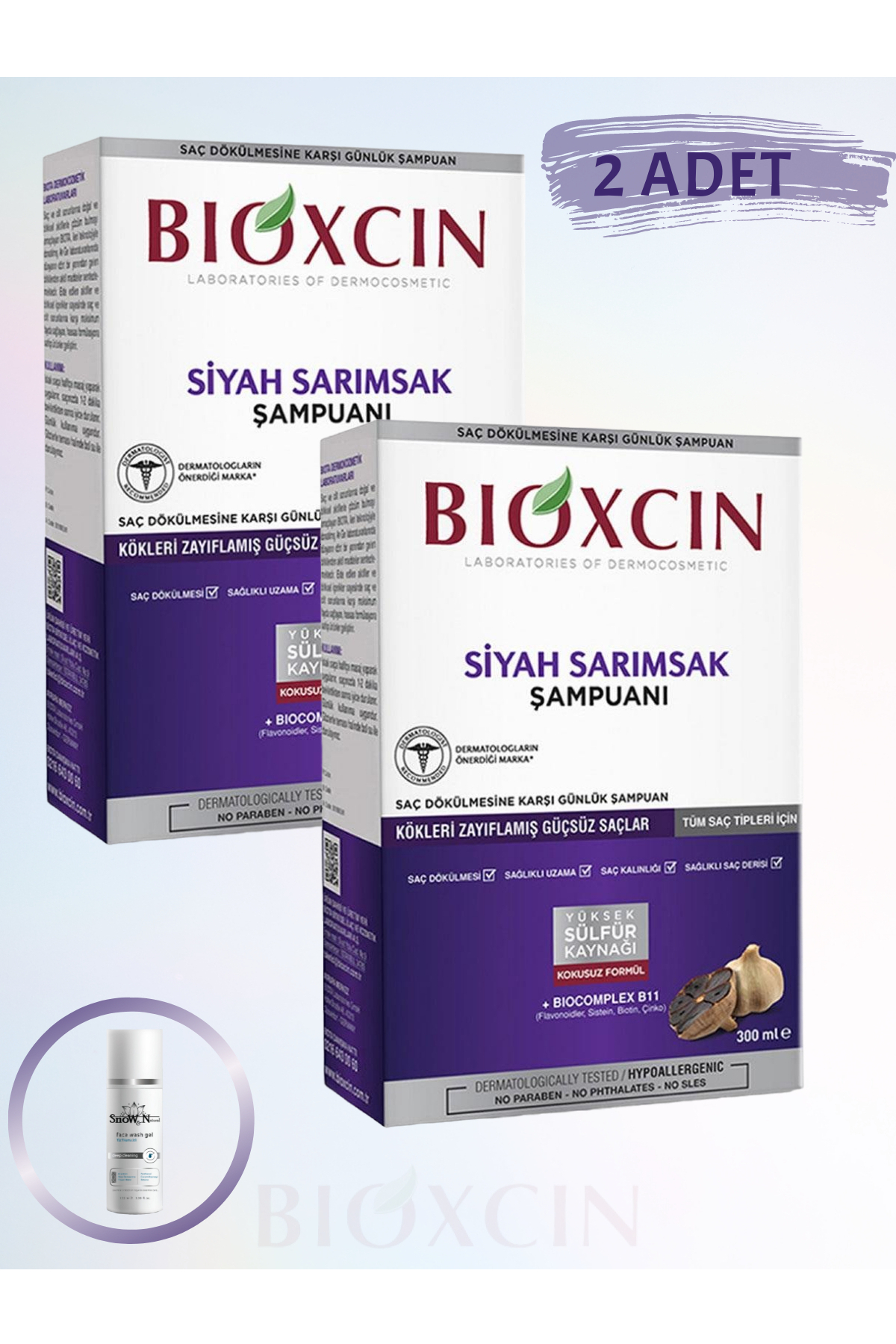 Bioxcin Siyah Sarımsak Şampuanı 300 ml Tüm Saç Tipleri İçin '2 ADET' + '1 ADET 100 ML YÜZ YIKAMA JELİ '
