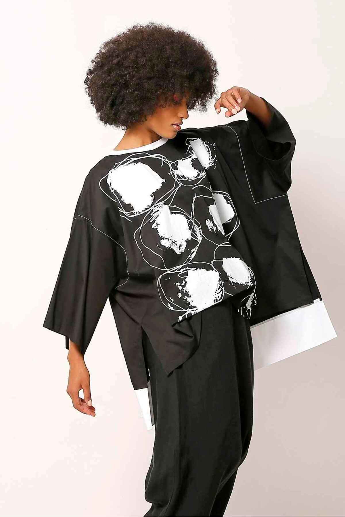 BİZE Baskılı Panço Bluz - Siyah Özellikleri