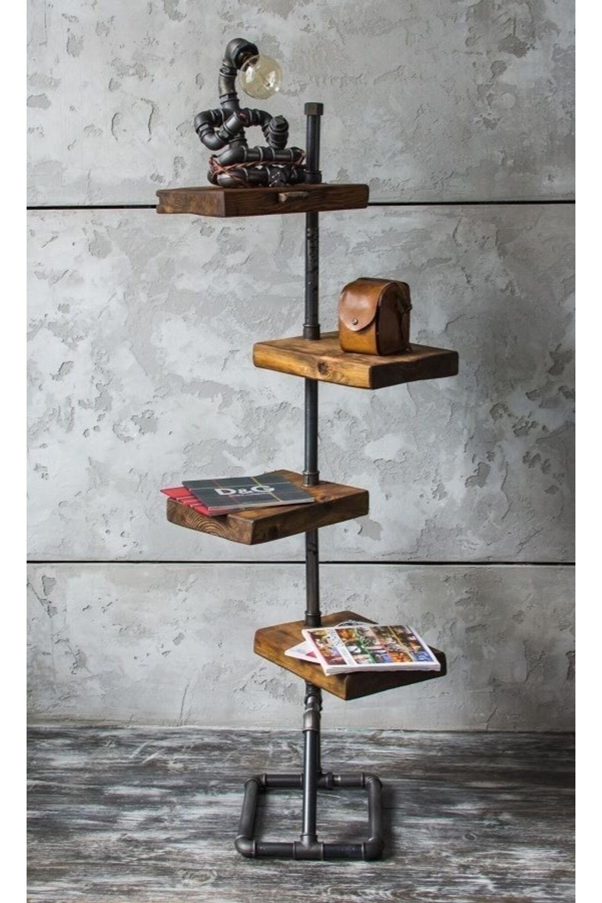 Blbndesign Dekoratif Borudan Raf Ve Aydınlatma Lambader 2'li Set