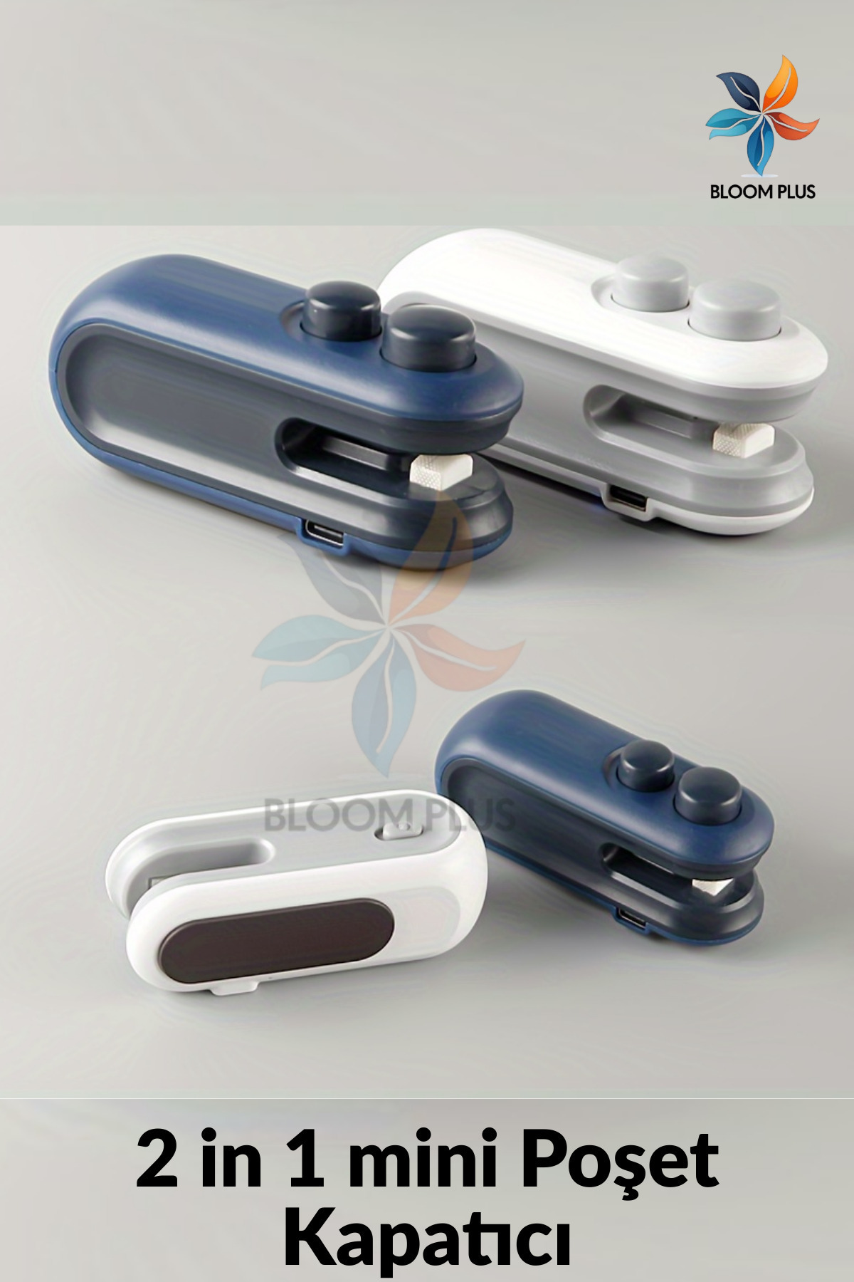 bloomplus 2 İn 1 Şarjlı Poşet Ambalaj Ağzı Kapatıcı Poşet Mühürleme Aparatı Mini Poşet Kapatıcı Ve Kesici