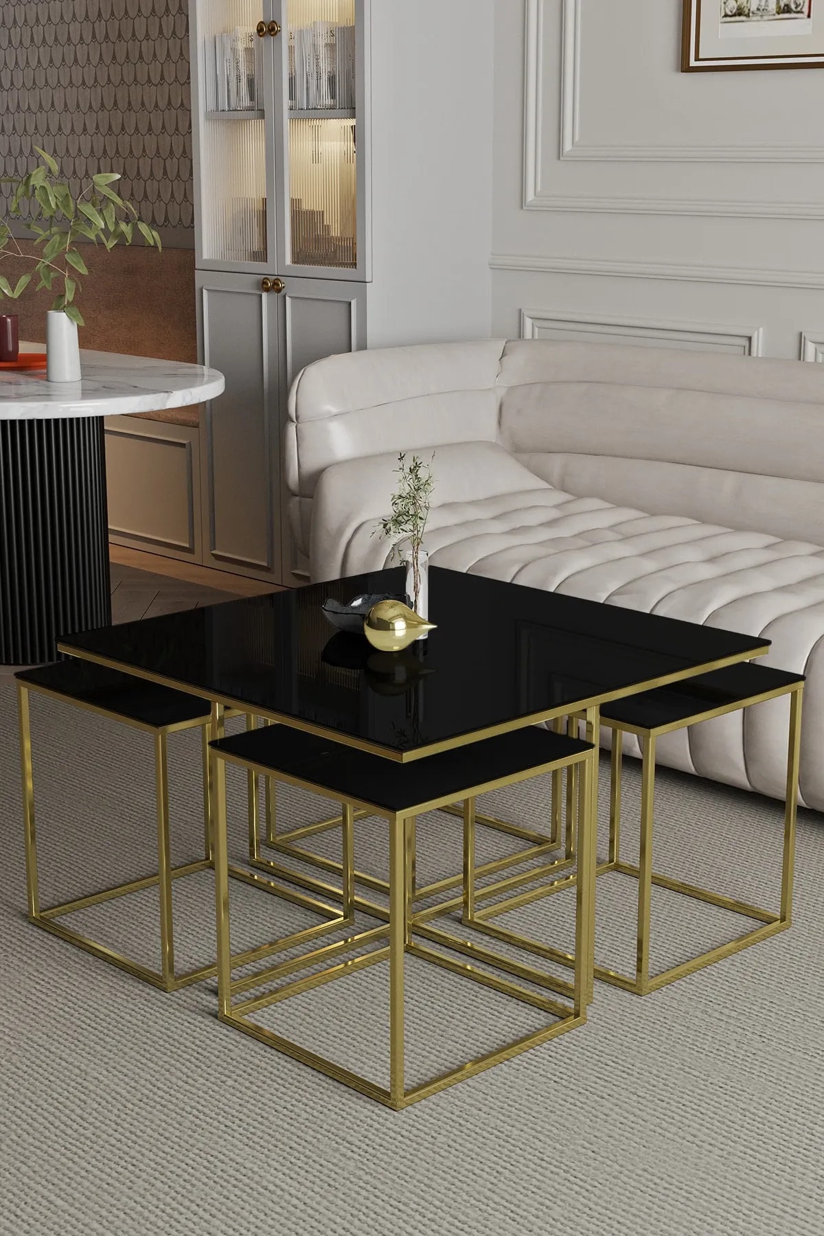 Boboco 4+1 SEHPA SETİ ORTA SEHPA YAN SEHPA KARE PİZZA SEHPA PUZZLE SEHPA TEMPERLİ CAM SEHPA