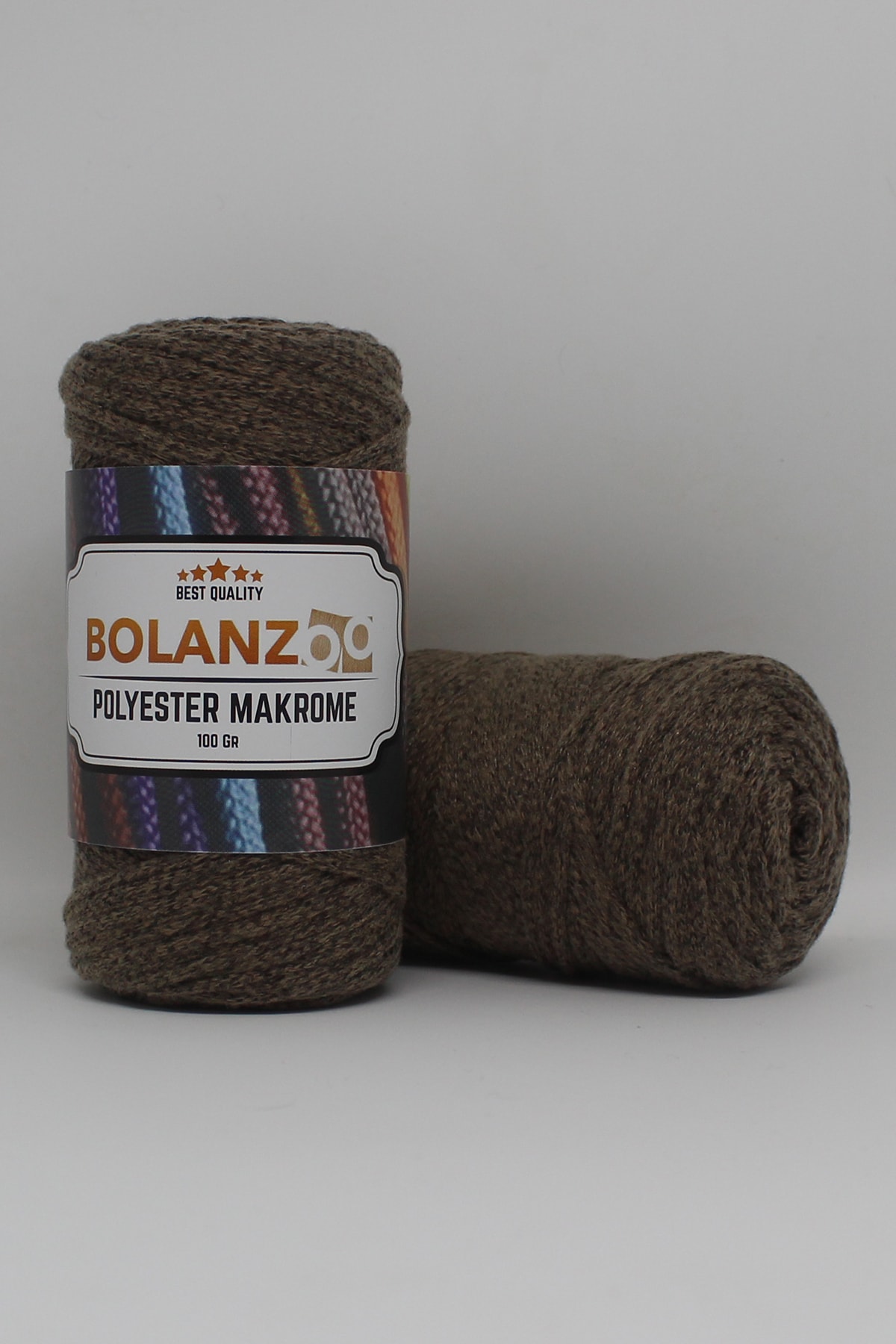 Bolanzoo Polyester Makrome Ipi 2 Adet 100gr Kırçıllı Kahverengi 3mm Örgü Ipi