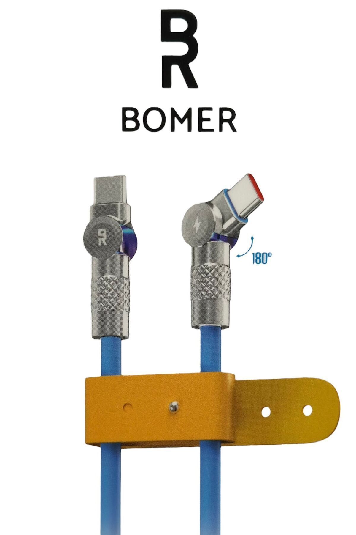 BOMER 3827 120w 6a Mavi Renk Type C To Type C 180 Derece Döner Başlı Işıklı Şarj Ve Data Fly Kablosu Özellikleri