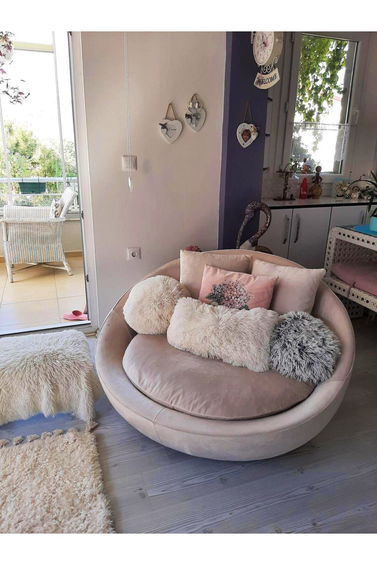 BOZKOÇHOME Ruby Yuvarlak 360° Döner Berjer Kadife Tekli Koltuk Modern Konforlu Özellikleri