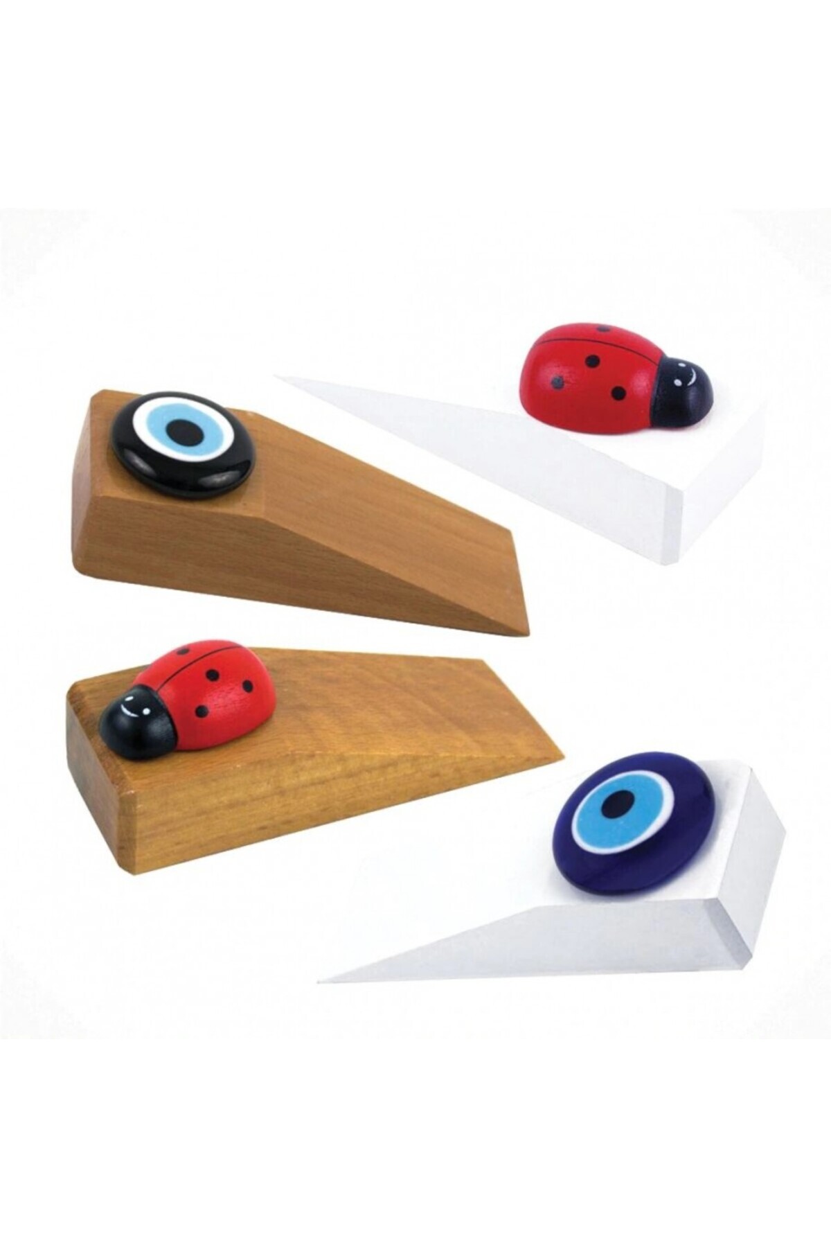 btm home Ahşap Uğur Böcekli & Nazar Boncuklu Kapı Stoperi, 1 Adet Kapı Takozu, Kapı Tutucu, Kapı durdurucu