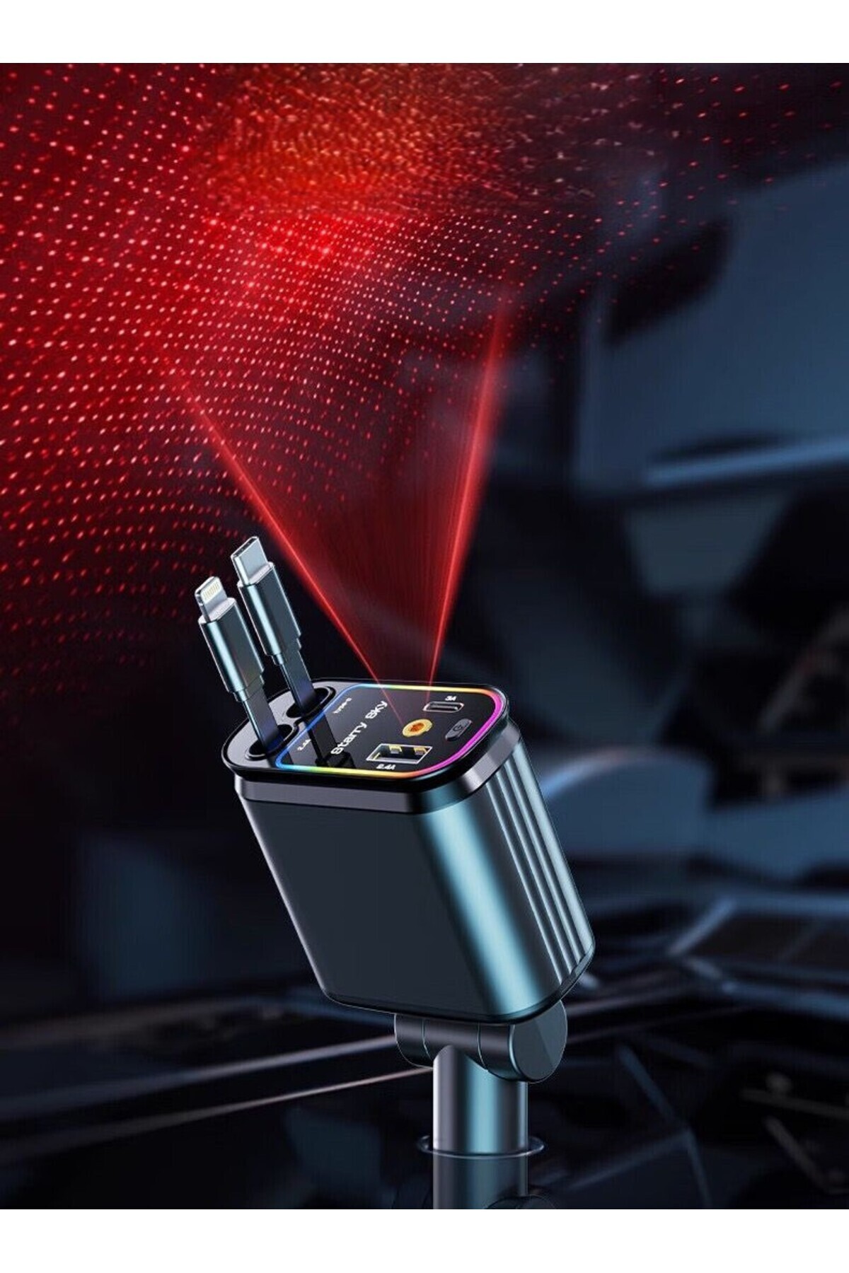 BUFS 66W 4in1 Makara Kablolu Araç Şarj Cihazı – Hızlı Şarj + Yıldız Işık Efekti + Type-C & USB Çıkışlı