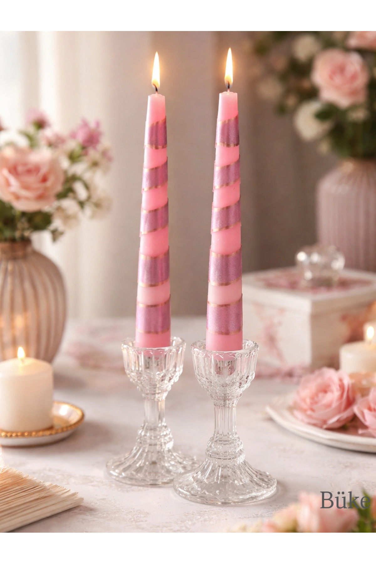 BÜKE Çizgi desenli Şamdan mum Özellikleri